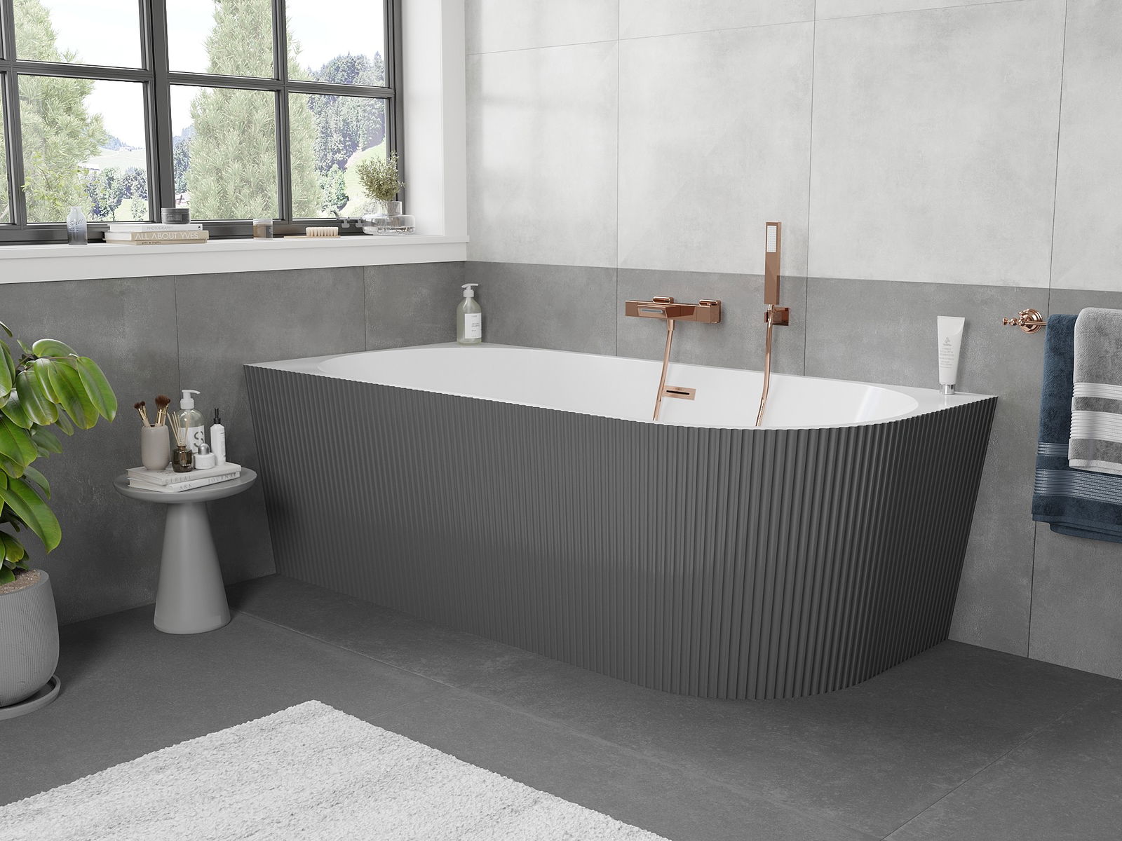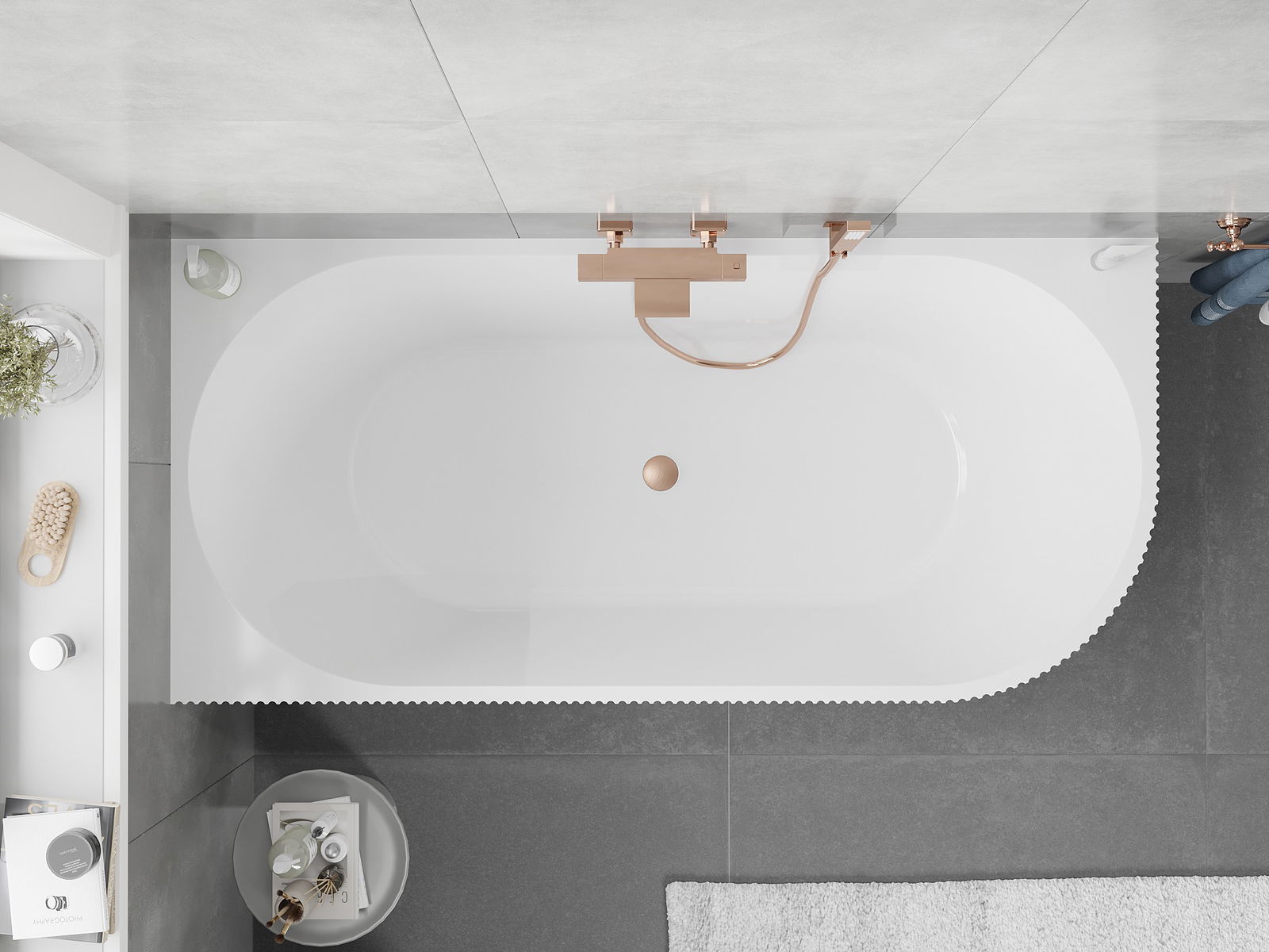 Mexen Silo cadă de colț stând liber pe stânga, canelată 150 x 75 cm, alb/gri, preaplin din cupru periat - 52891507562L-65