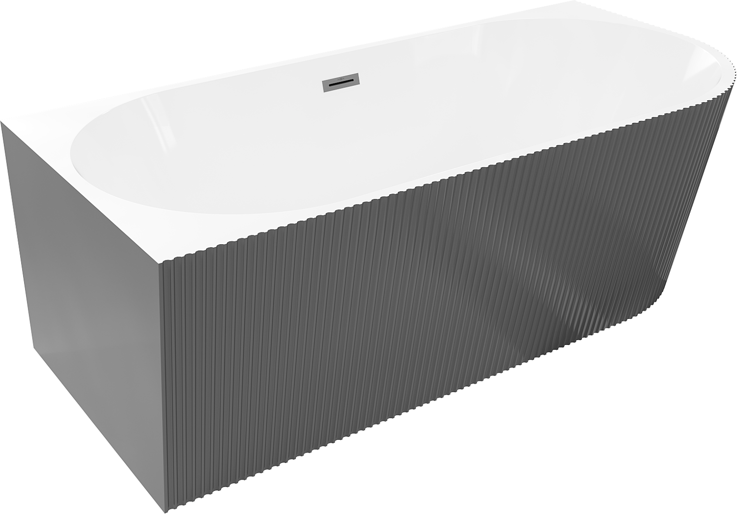 Mexen Silo cadă de colț freestanding stânga canelată 170 x 80 cm, alb/gri, preaplin gun metal - 52891708062L-95