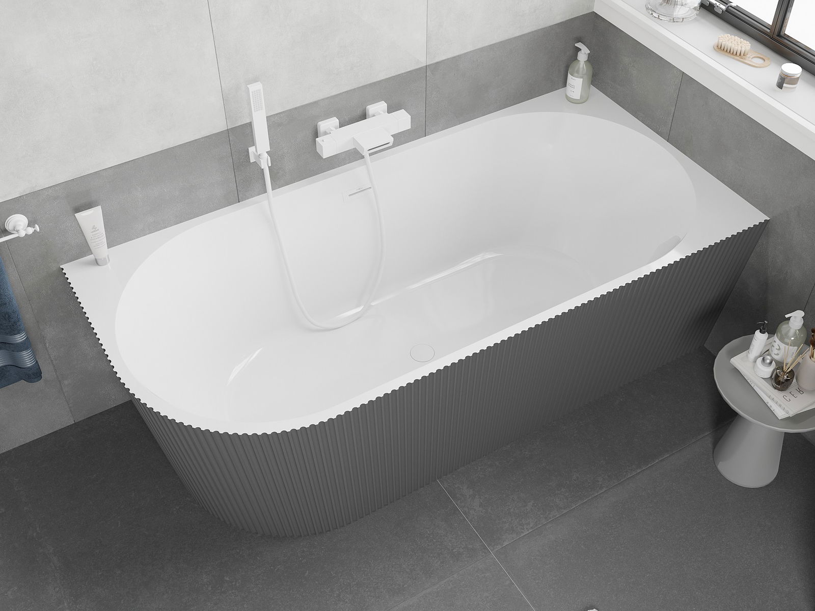 Mexen Silo cadă freestanding de colț dreapta, canelată 150 x 75 cm, alb/gri, preaplin alb - 52891507562P-20