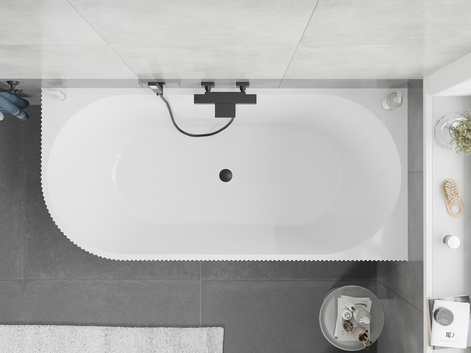 Mexen Silo cadă de colț dreaptă freestanding, 150 x 75 cm, alb/gri, preaplin negru - 52891507562P-70