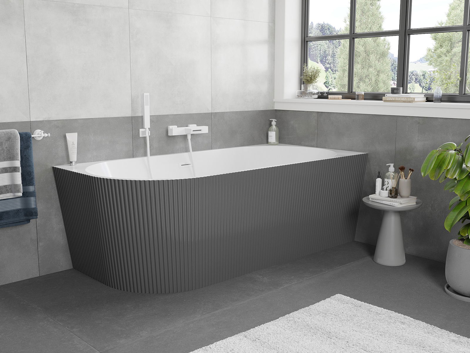 Mexen Silo cadă de sine stătătoare colț dreapta canelată 170 x 80 cm, alb/gri, preaplin alb - 52891708062P-20