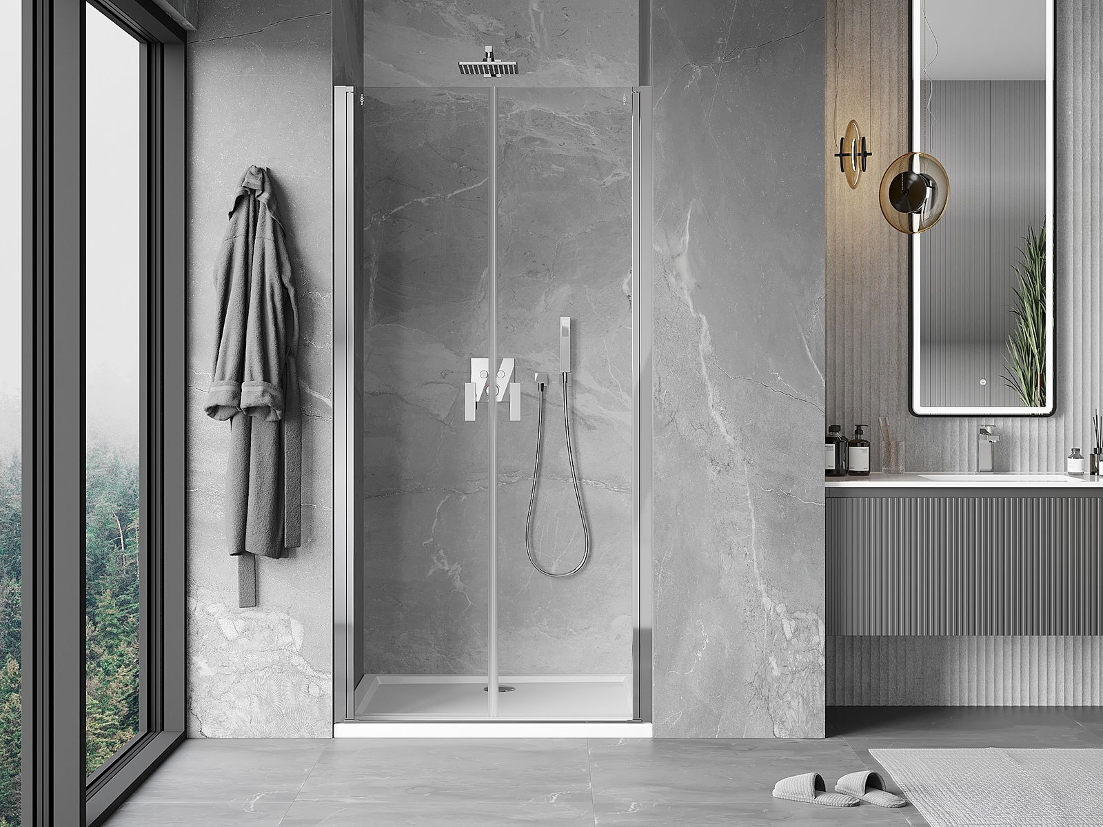 Mânerul practic și confortabil este realizat din metal durabil și rezistent. Forma modernă, combinată cu un finisaj asortat cu culoarea profilelor, conferă un aspect modern și elegant întregului, subliniind estetica fiecărei băi.