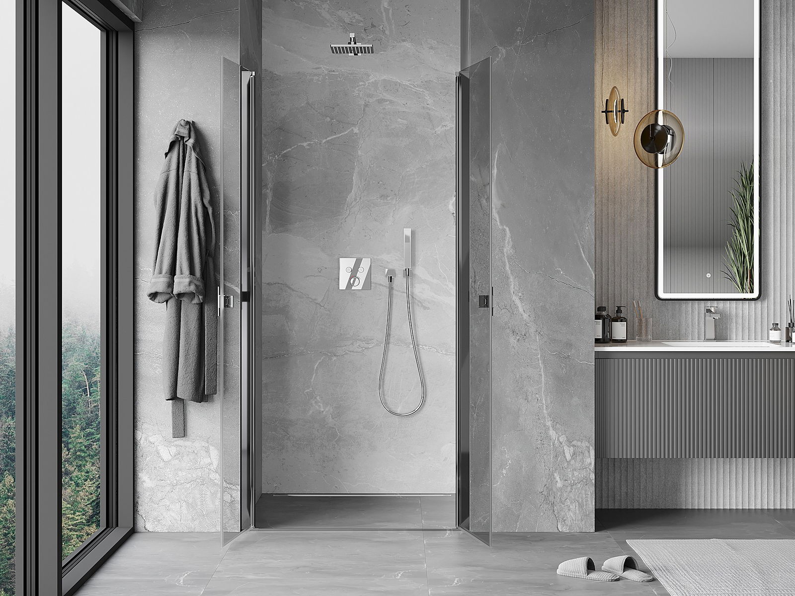 Mânerul practic și confortabil este realizat din metal durabil și rezistent. Forma modernă, combinată cu un finisaj asortat cu culoarea profilelor, conferă un aspect modern și elegant întregului, subliniind estetica fiecărei băi.