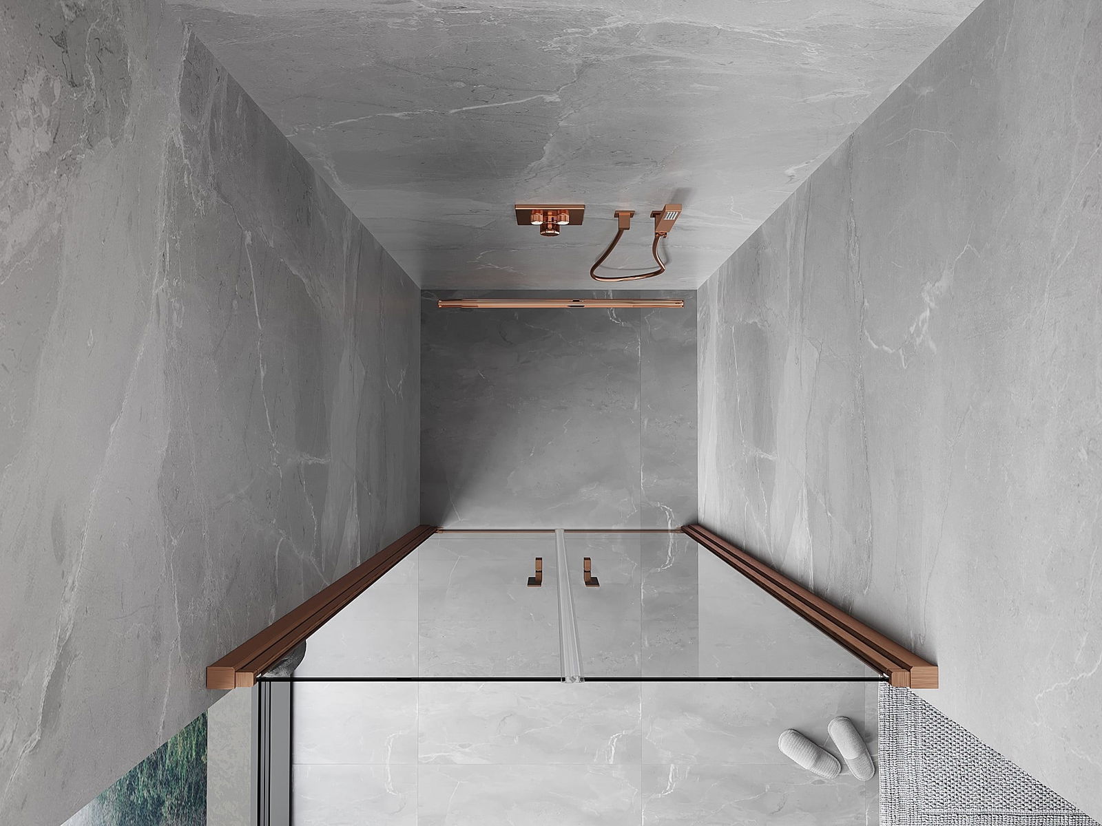 Produsul poate fi montat fie pe cabina de duș, fie direct pe podea, în funcție de nevoi. Metoda de montare universală permite adaptarea produsului la diferite tipuri de băi și configurații de spațiu.