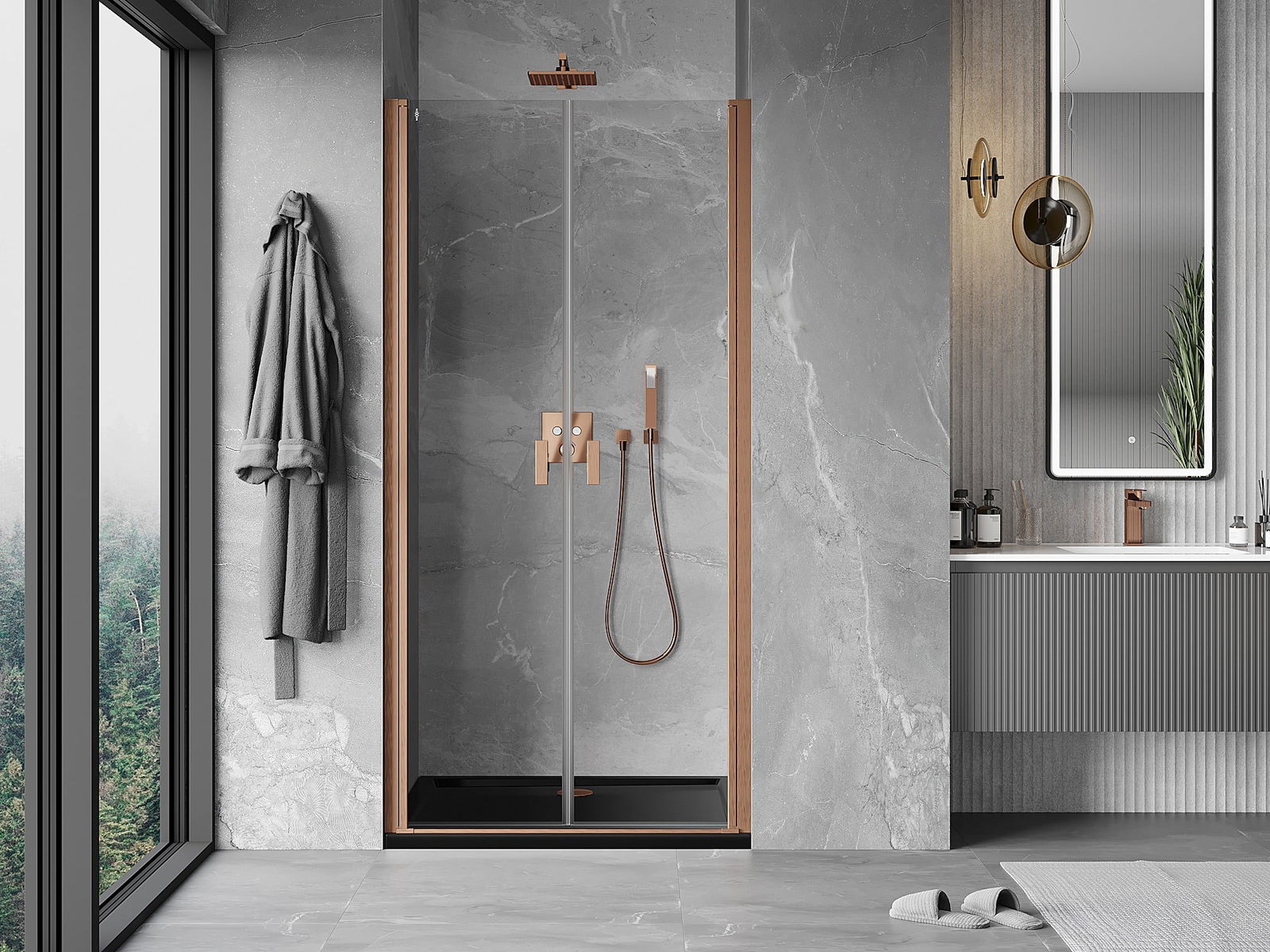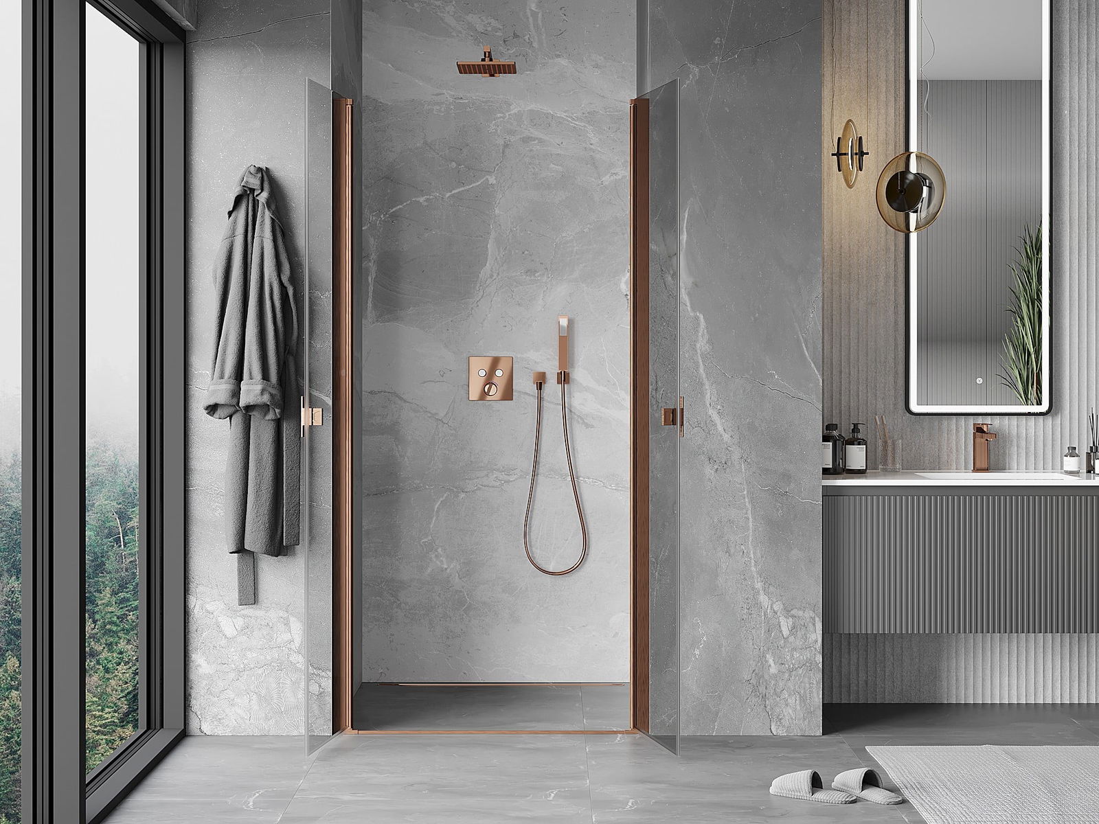 Mânerul practic și confortabil este realizat din metal durabil și rezistent. Forma modernă, combinată cu un finisaj asortat cu culoarea profilelor, conferă un aspect modern și elegant întregului, subliniind estetica fiecărei băi.