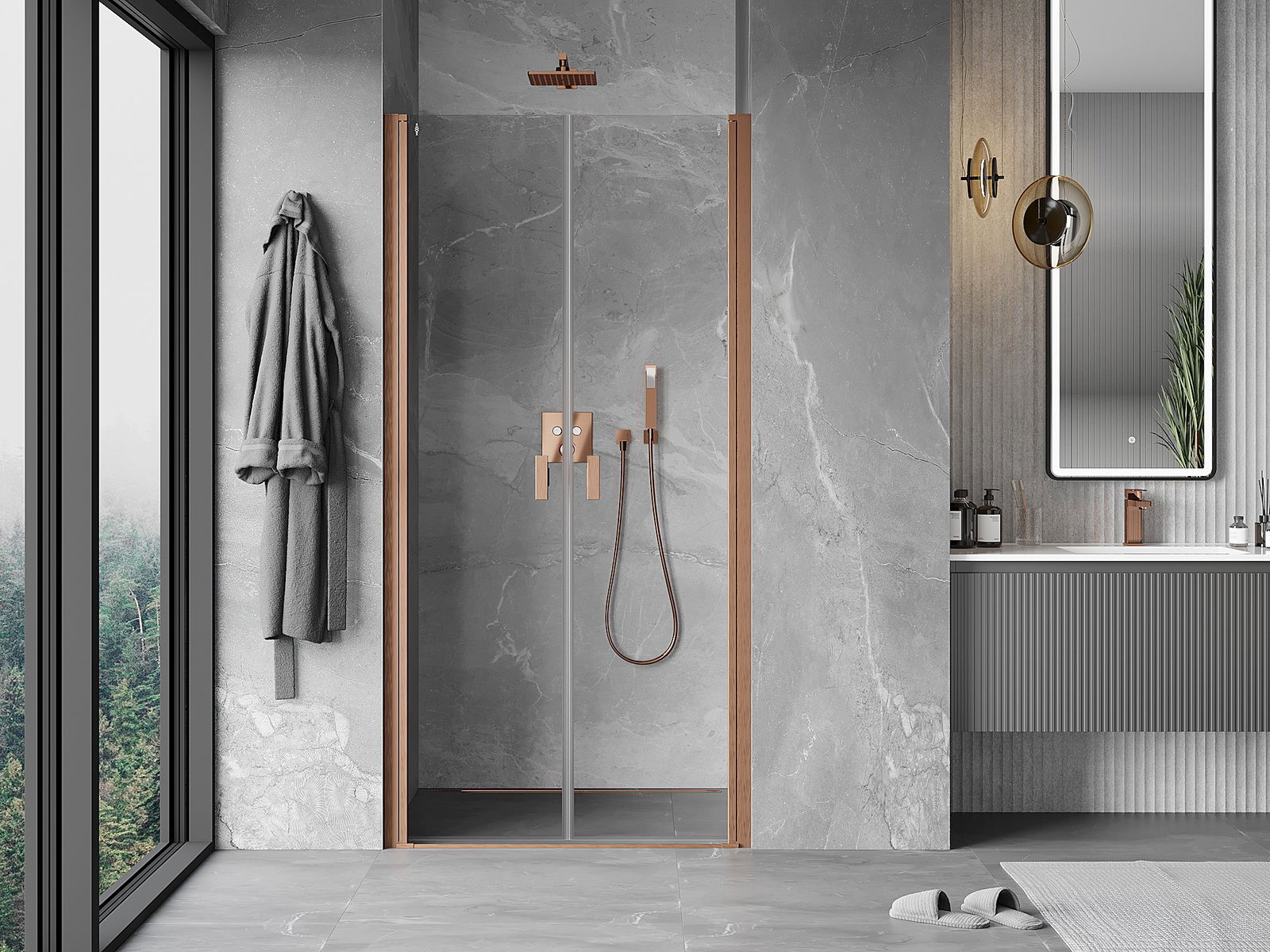 Mânerul practic și confortabil este realizat din metal durabil și rezistent. Forma modernă, combinată cu un finisaj asortat cu culoarea profilelor, conferă un aspect modern și elegant întregului, subliniind estetica fiecărei băi.