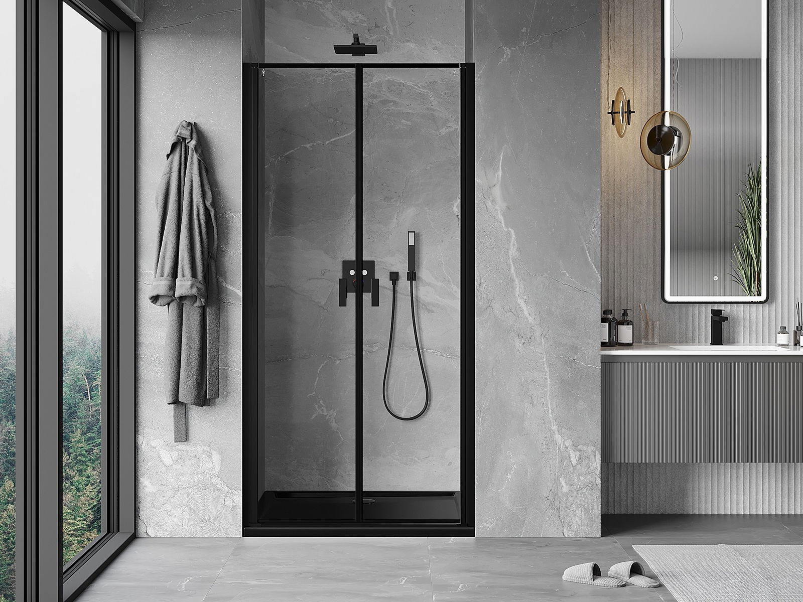 Mexen Mist uși de duș cu balamale, 70 cm, ramă neagră, negru - 8A7-070-000-70-70