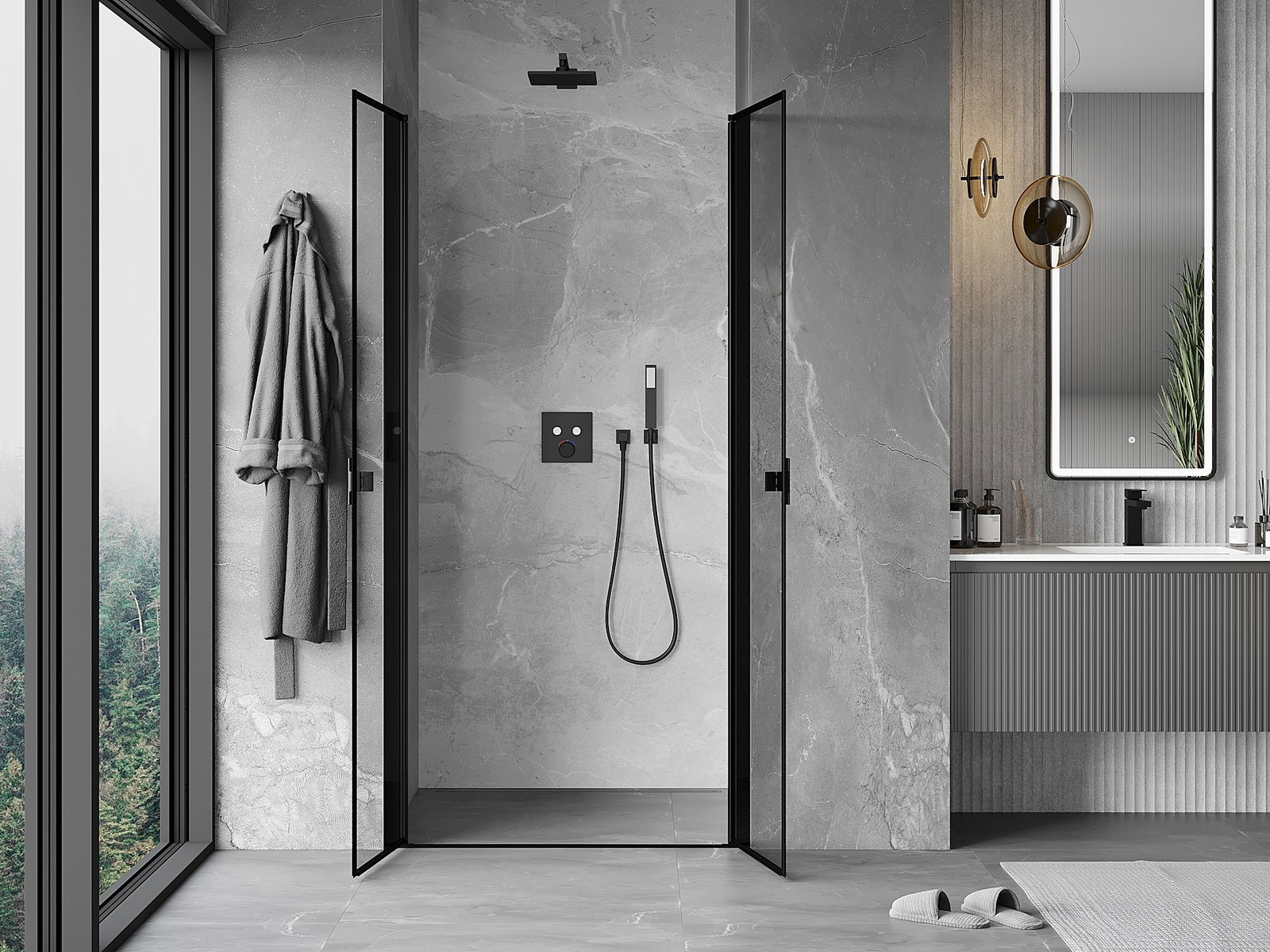 Mânerul practic și confortabil este realizat din metal durabil și rezistent. Forma modernă, combinată cu un finisaj asortat cu culoarea profilelor, conferă un aspect modern și elegant întregului, subliniind estetica fiecărei băi.