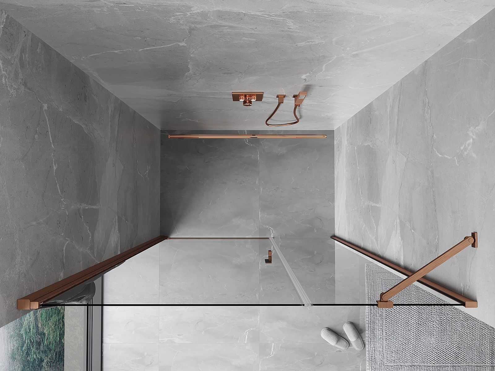 Produsul poate fi montat fie pe cabina de duș, fie direct pe podea, în funcție de nevoi. Metoda de montare universală permite adaptarea produsului la diferite tipuri de băi și configurații de spațiu.