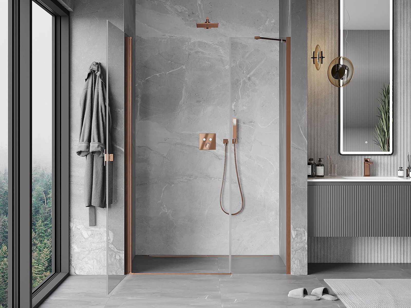 Mânerul practic și confortabil este realizat din metal durabil și rezistent. Forma modernă, combinată cu un finisaj asortat cu culoarea profilelor, conferă un aspect modern și elegant întregului, subliniind estetica fiecărei băi.