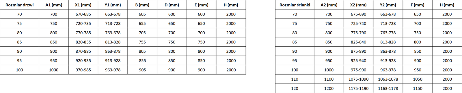 Mărime: 100x110 cm (ușă stânga 100 cm, panou lateral 110 cm)