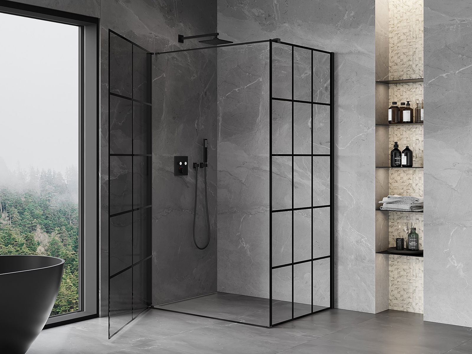 Mânerul practic și confortabil este realizat din metal durabil și rezistent. Forma modernă, combinată cu un finisaj asortat cu culoarea profilelor, conferă un aspect modern și elegant întregului, subliniind estetica fiecărei băi.