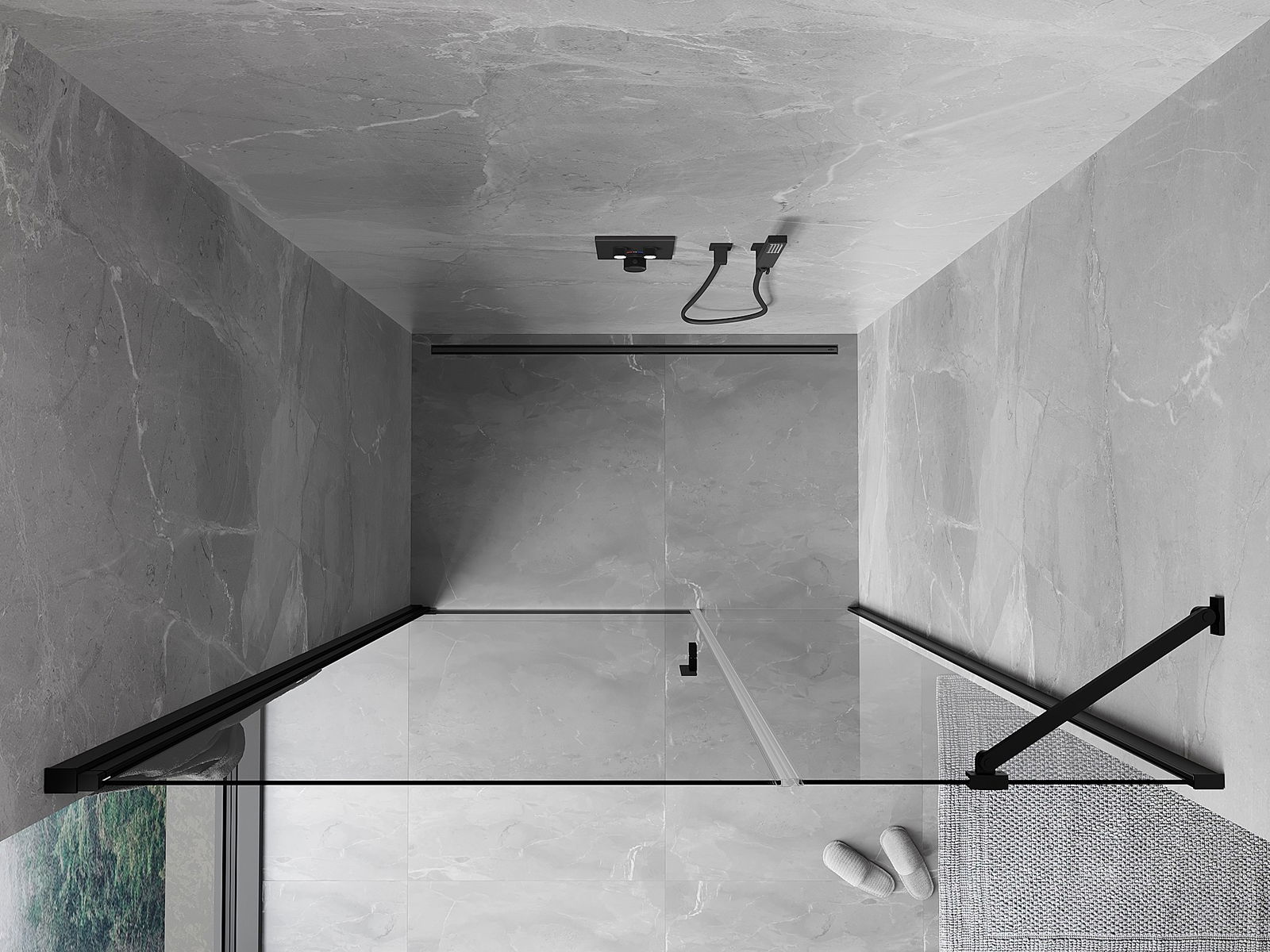 Produsul poate fi montat fie pe cabina de duș, fie direct pe podea, în funcție de nevoi. Metoda de montare universală permite adaptarea produsului la diferite tipuri de băi și configurații de spațiu.