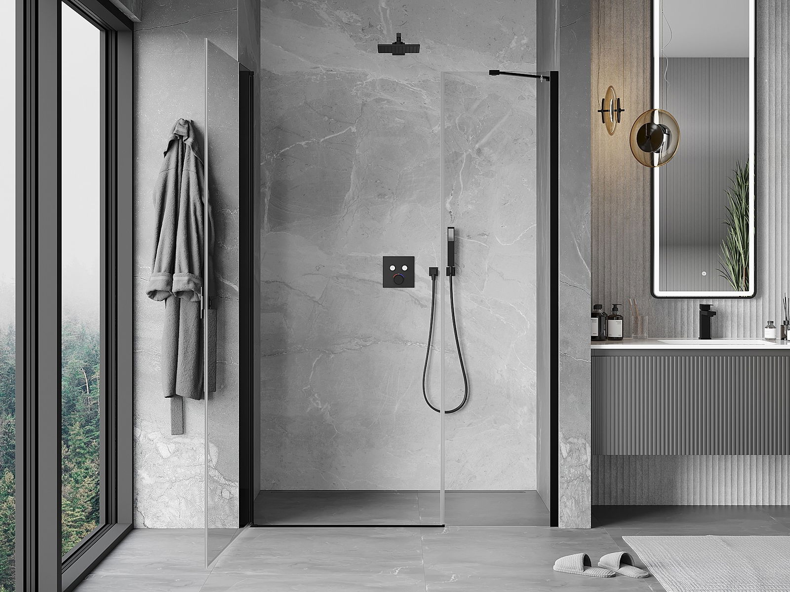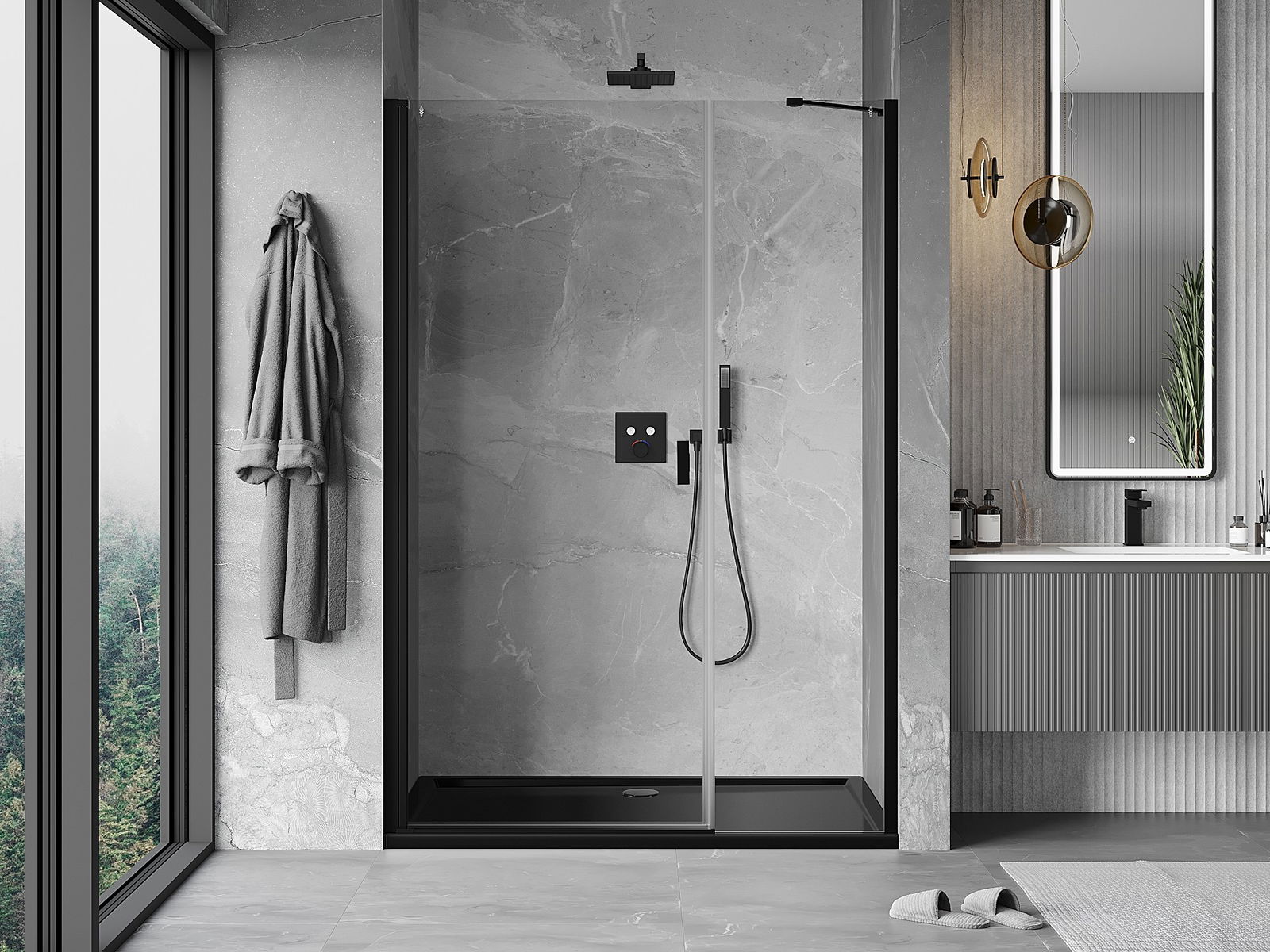 Mânerul practic și confortabil este realizat din metal durabil și rezistent. Forma modernă, combinată cu un finisaj asortat cu culoarea profilelor, conferă un aspect modern și elegant întregului, subliniind estetica fiecărei băi.