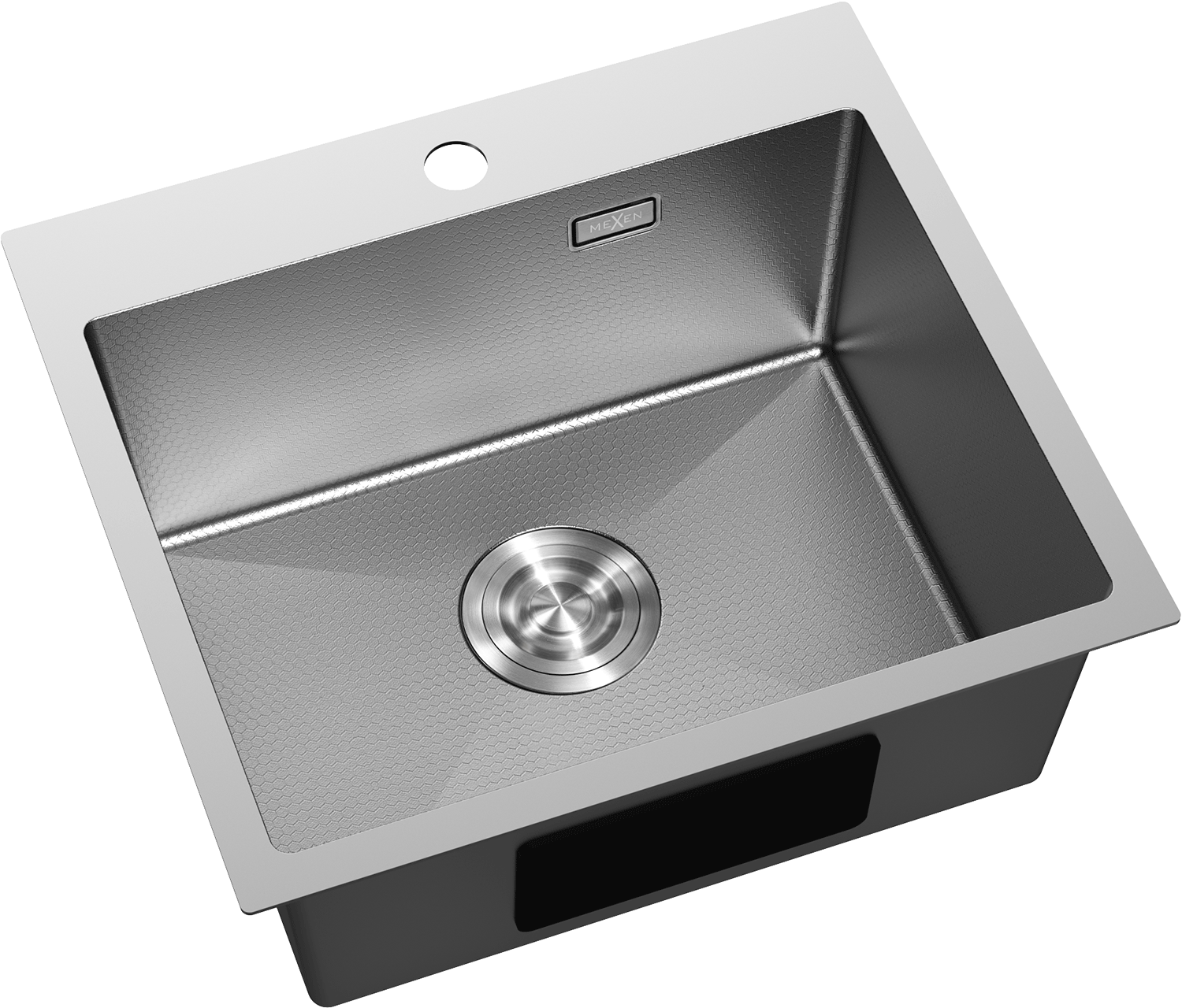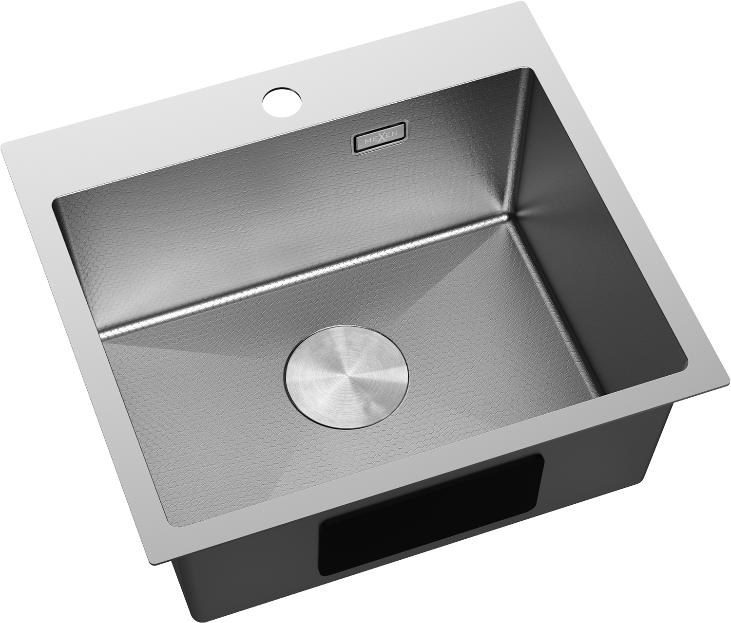 Chiuveta are un orificiu de preaplin ascuns, care protejează împotriva revărsării apei, menținând în același timp un aspect elegant. Discret încorporat în peretele chiuvetei, nu afectează estetica acesteia. Este o soluție practică și stilată, care îmbină siguranța cu designul modern.