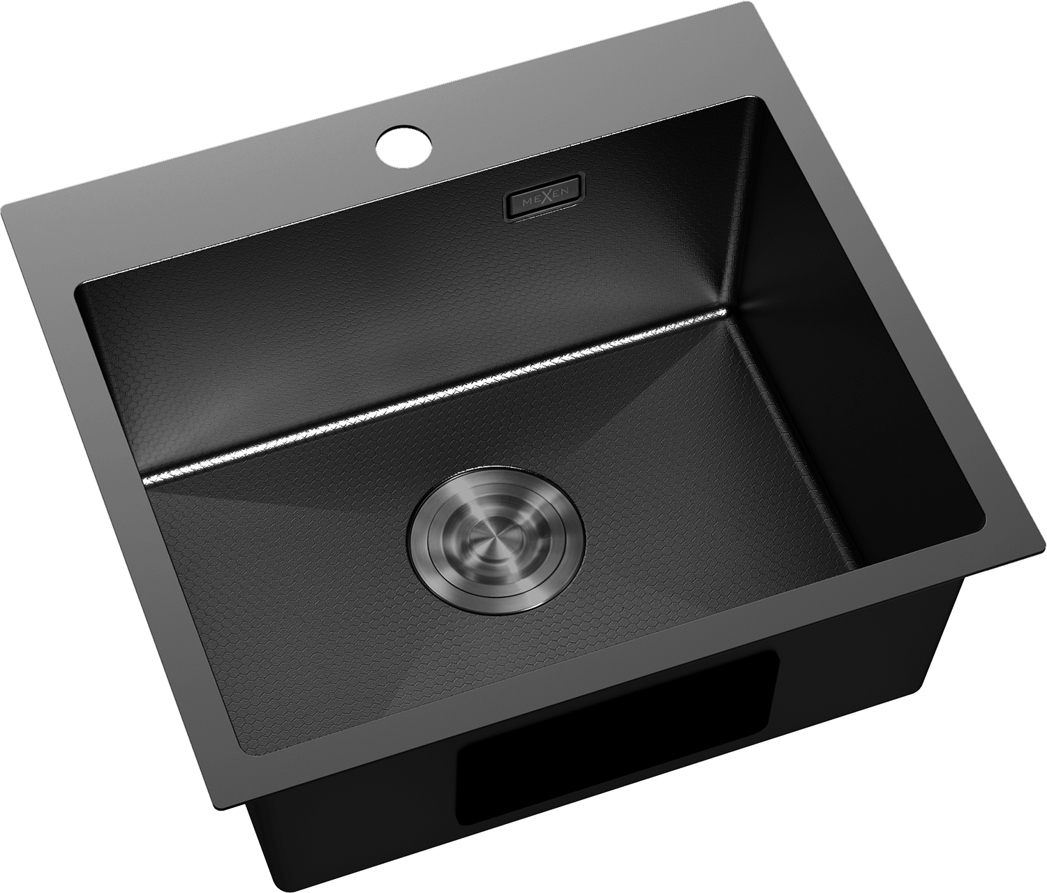 Chiuveta are un orificiu de preaplin ascuns, care protejează împotriva revărsării apei, menținând în același timp un aspect elegant. Discret încorporat în peretele chiuvetei, nu afectează estetica acesteia. Este o soluție practică și stilată, care îmbină siguranța cu designul modern.