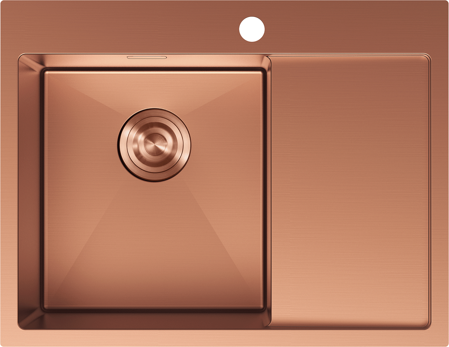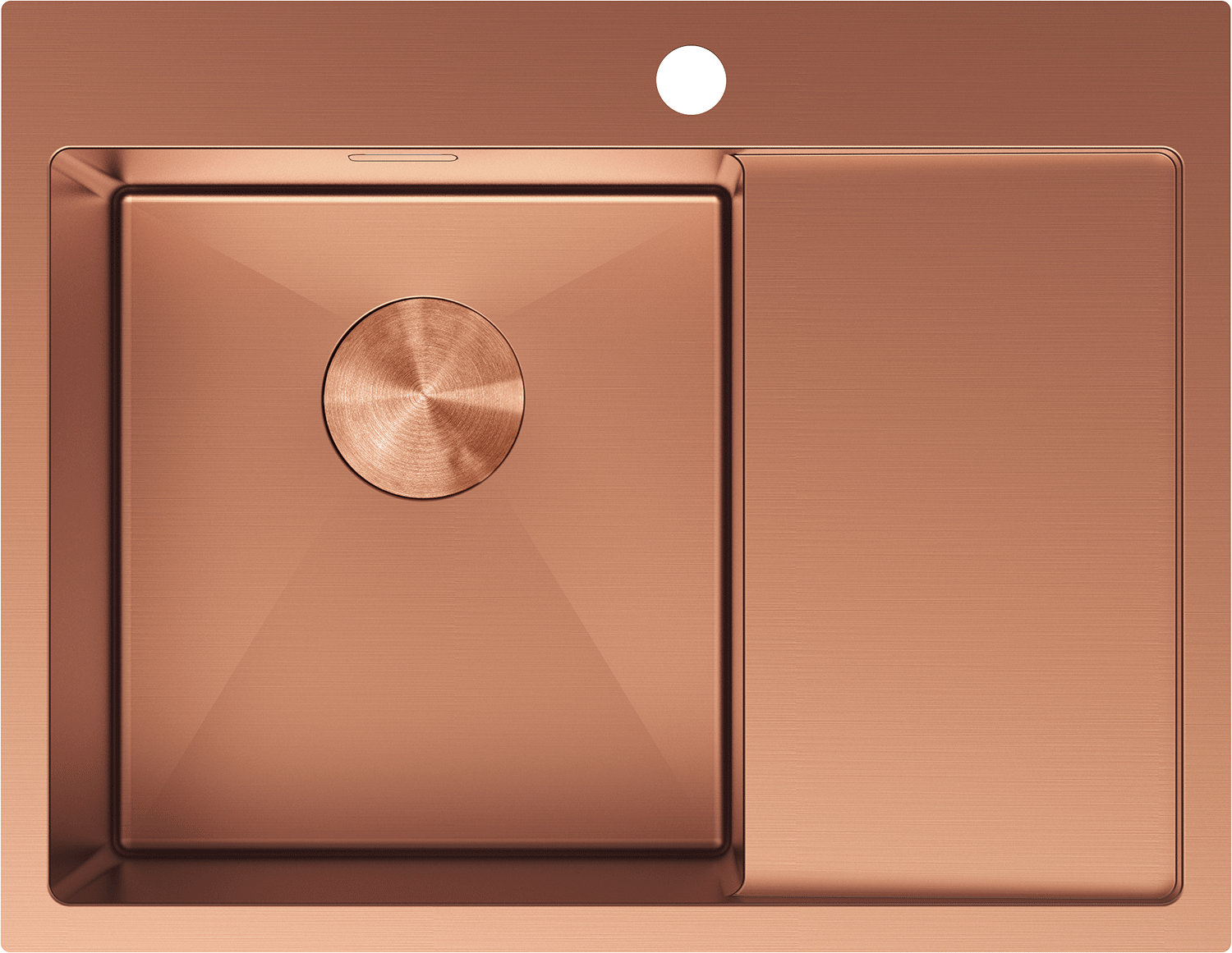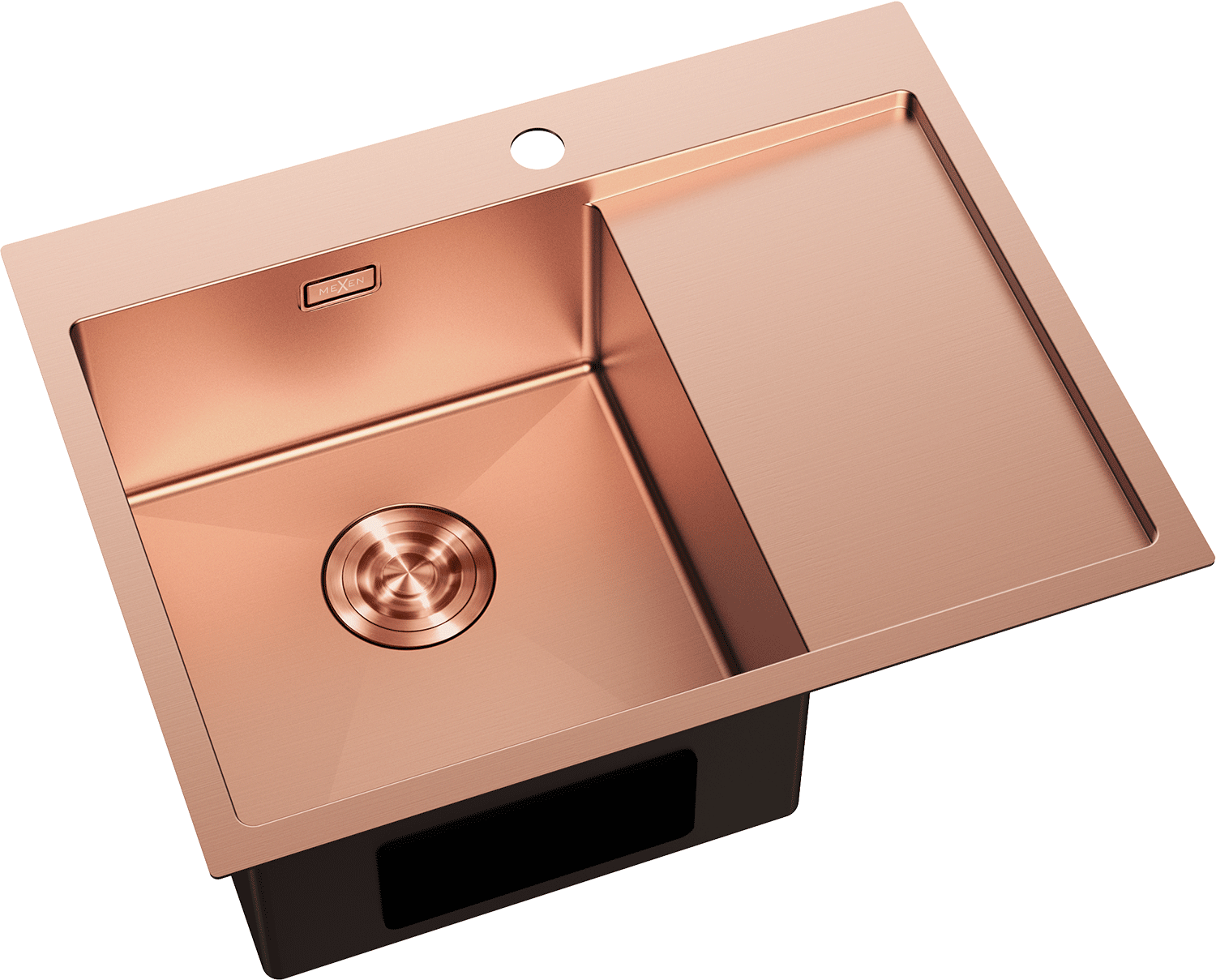 Mexen Exar chiuvetă de oțel inoxidabil cu o cuvă și scurgător, stânga 620 x 480 mm, cupru - 6431621005L-65