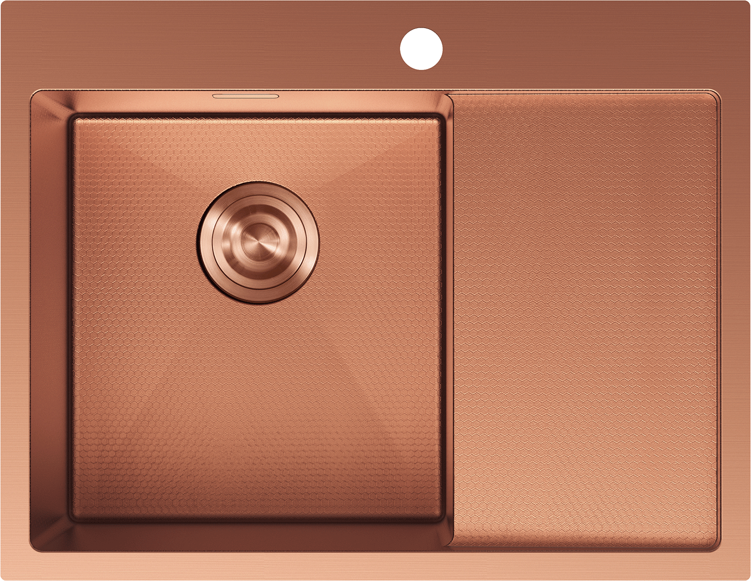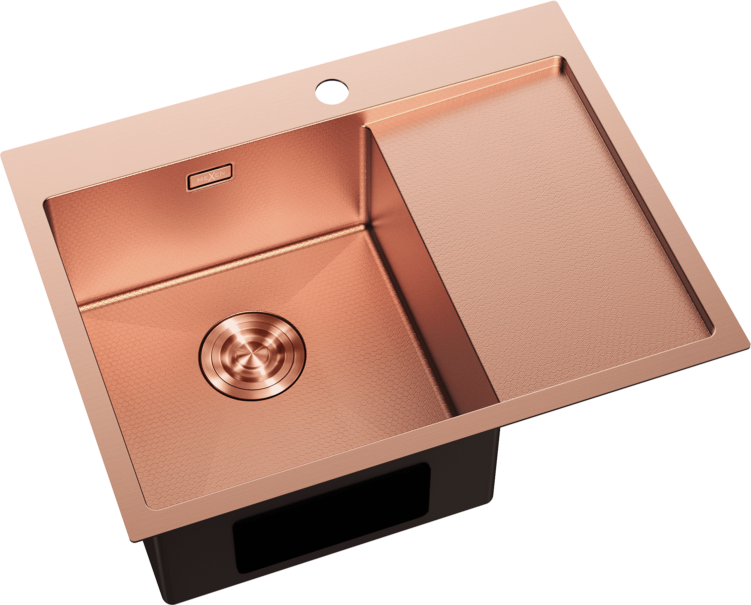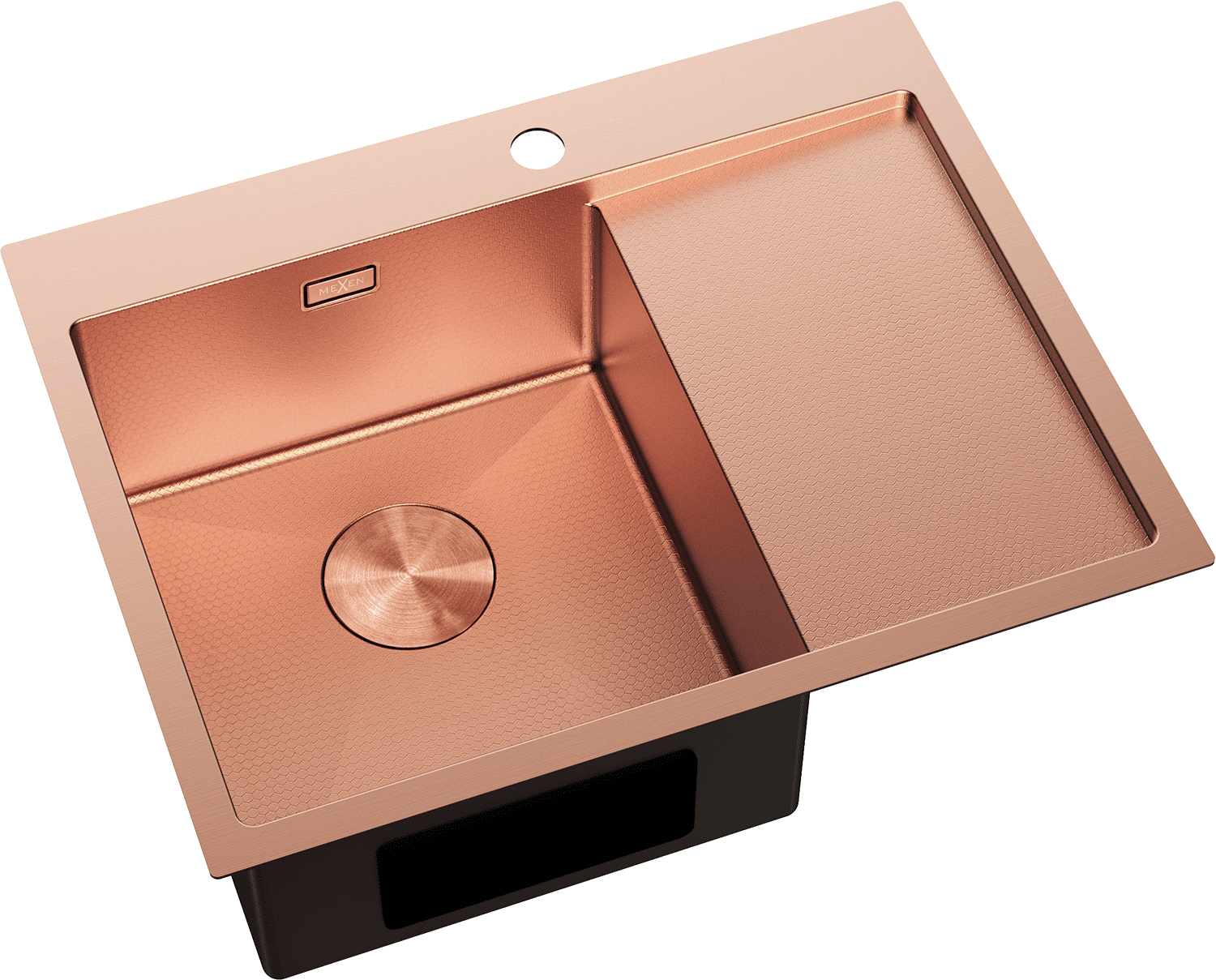 Mexen Exar chiuvetă de oțel cu 1 compartiment și scurgător stâng 620 x 480 mm, cupru HC - 6431621005L-65HC
