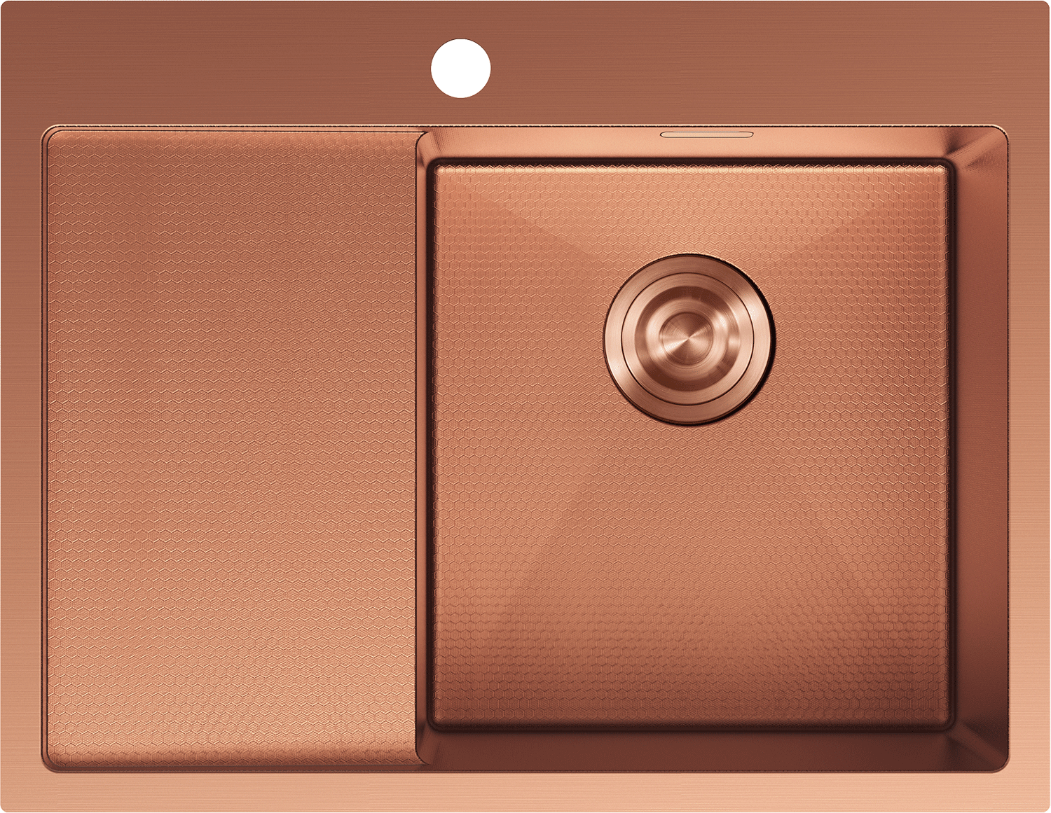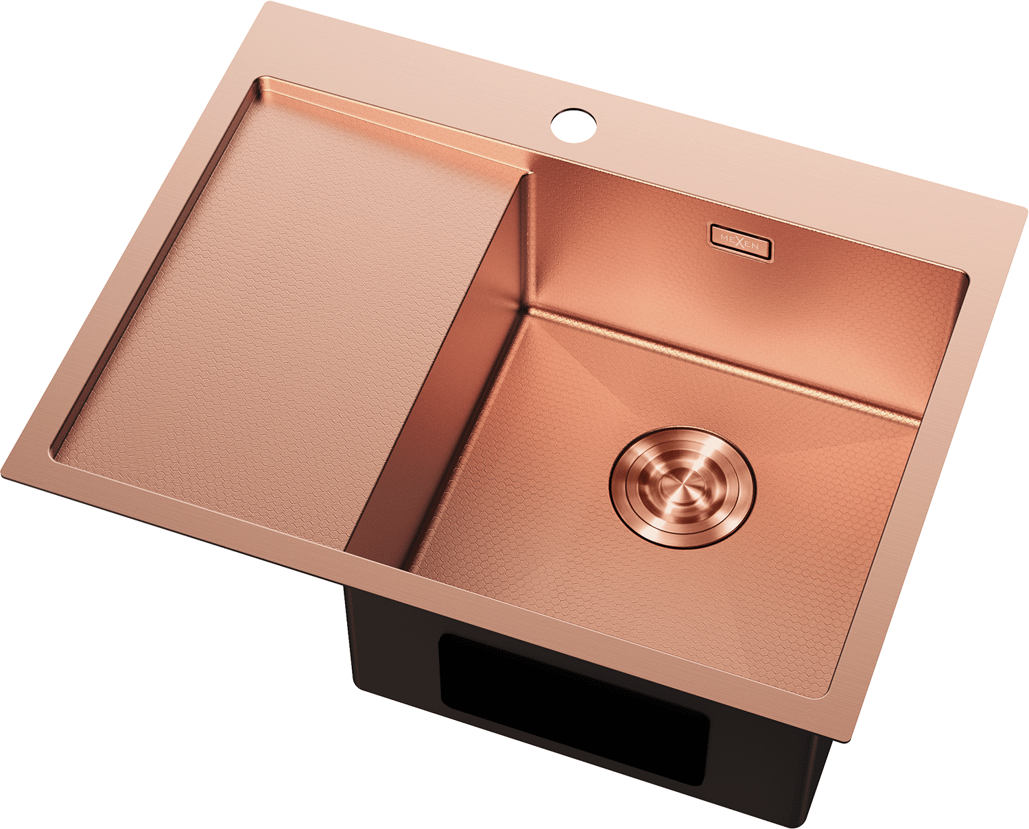 Mexen Exar chiuvetă din oțel inoxidabil cu 1 compartiment și picurător, dreapta 620 x 480 mm, cupru HC - 6432621005P-65HC