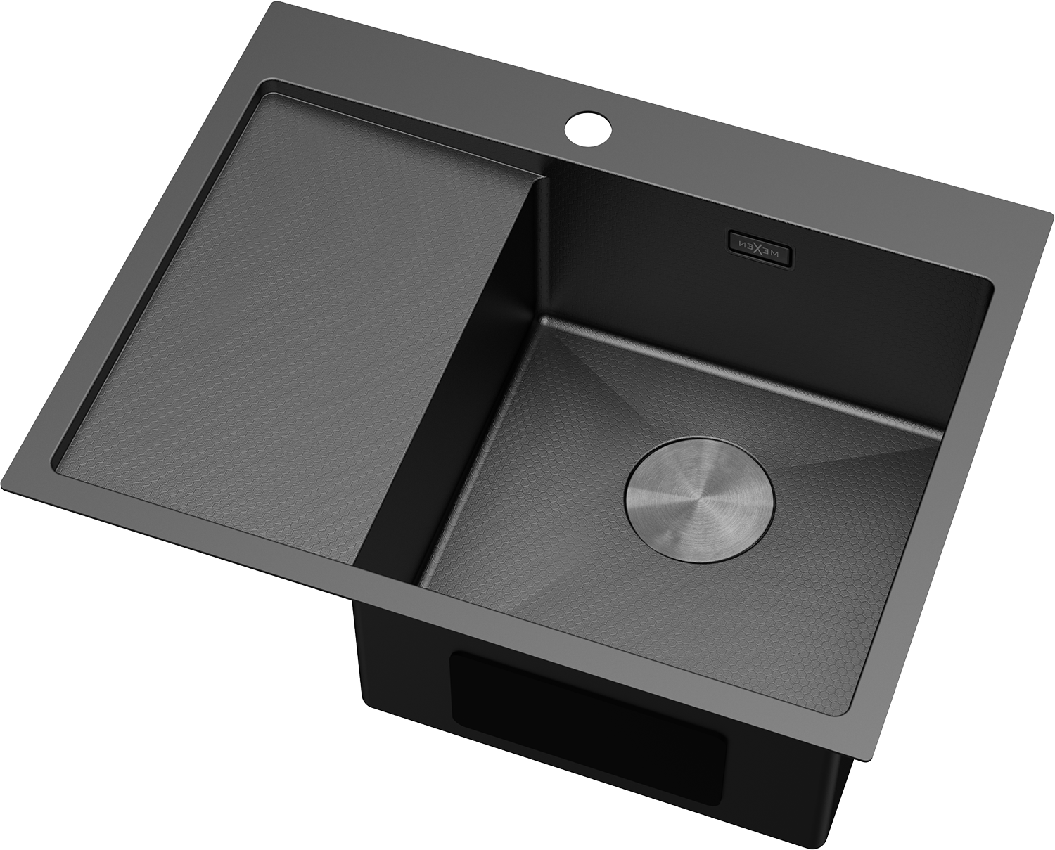 Mexen Exar chiuvetă din oțel cu 1 compartiment cu picurător, dreapta 620 x 480 mm, negru HC - 6432621005P-70HC