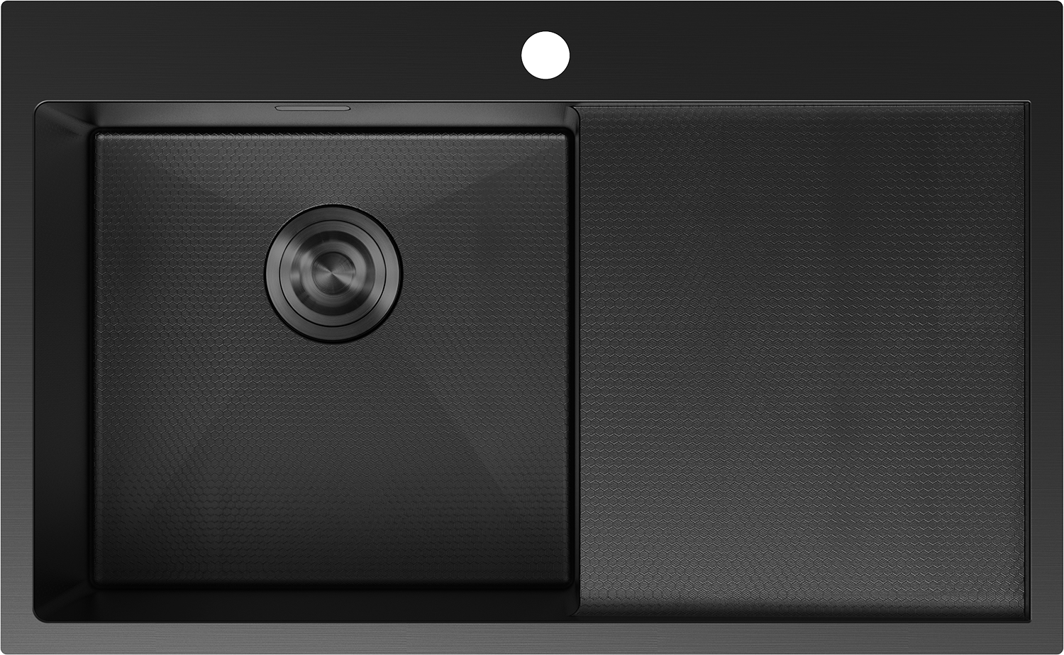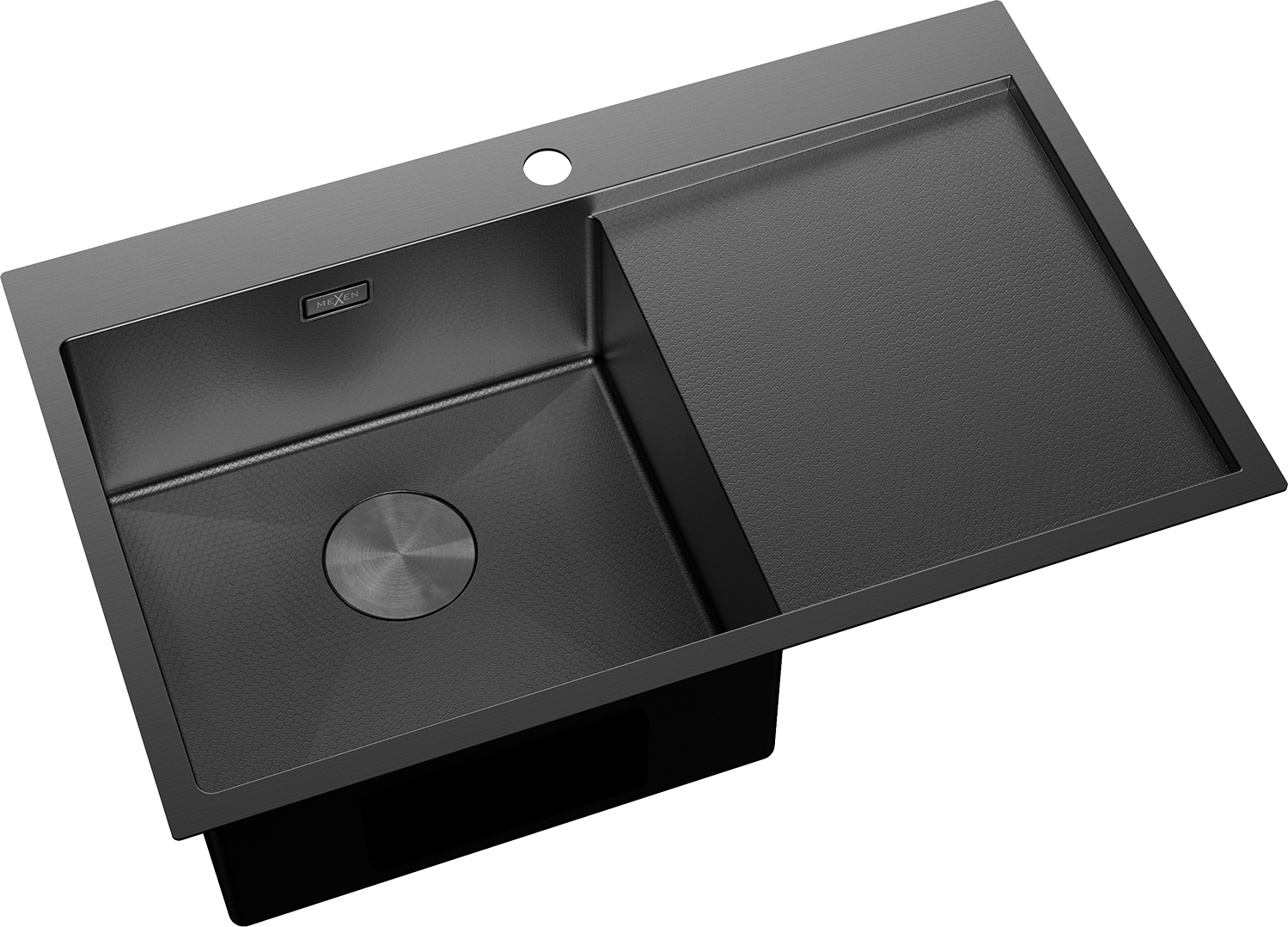 Mexen Exar chiuvetă de inox cu 1 compartiment și picurător, stânga 780 x 480 mm, negru HC - 6433781010L-70HC