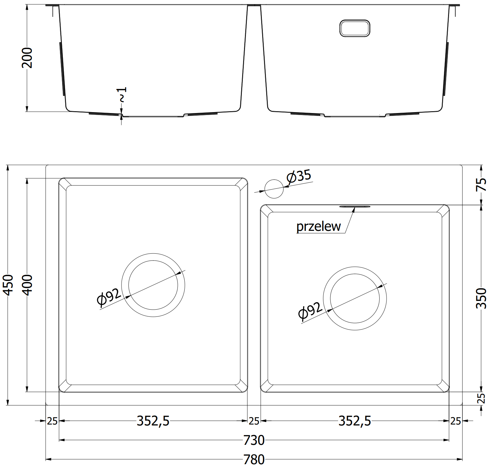 Mexen Xorin chiuvetă din oțel 2 compartimente 780 x 450 mm, negru HC - 6441782000-70HC