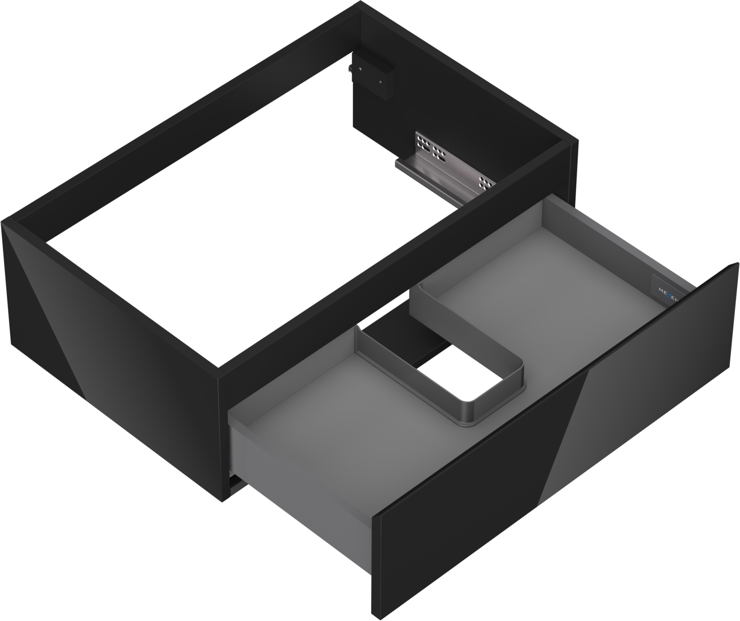 Decupajul în sertar este proiectat în așa fel încât să acomodeze sifonul, care este esențial în instalațiile de lavoare. Datorită acestui fapt, mobila poate fi montată complet funcțională, fără a fi necesară renunțarea la spațiul din sertar în favoarea instalației.