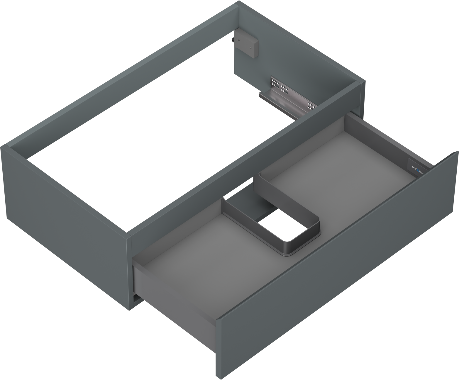 Decupajul în sertar este proiectat în așa fel încât să acomodeze sifonul, care este esențial în instalațiile de lavoare. Datorită acestui fapt, mobila poate fi montată complet funcțională, fără a fi necesară renunțarea la spațiul din sertar în favoarea instalației.