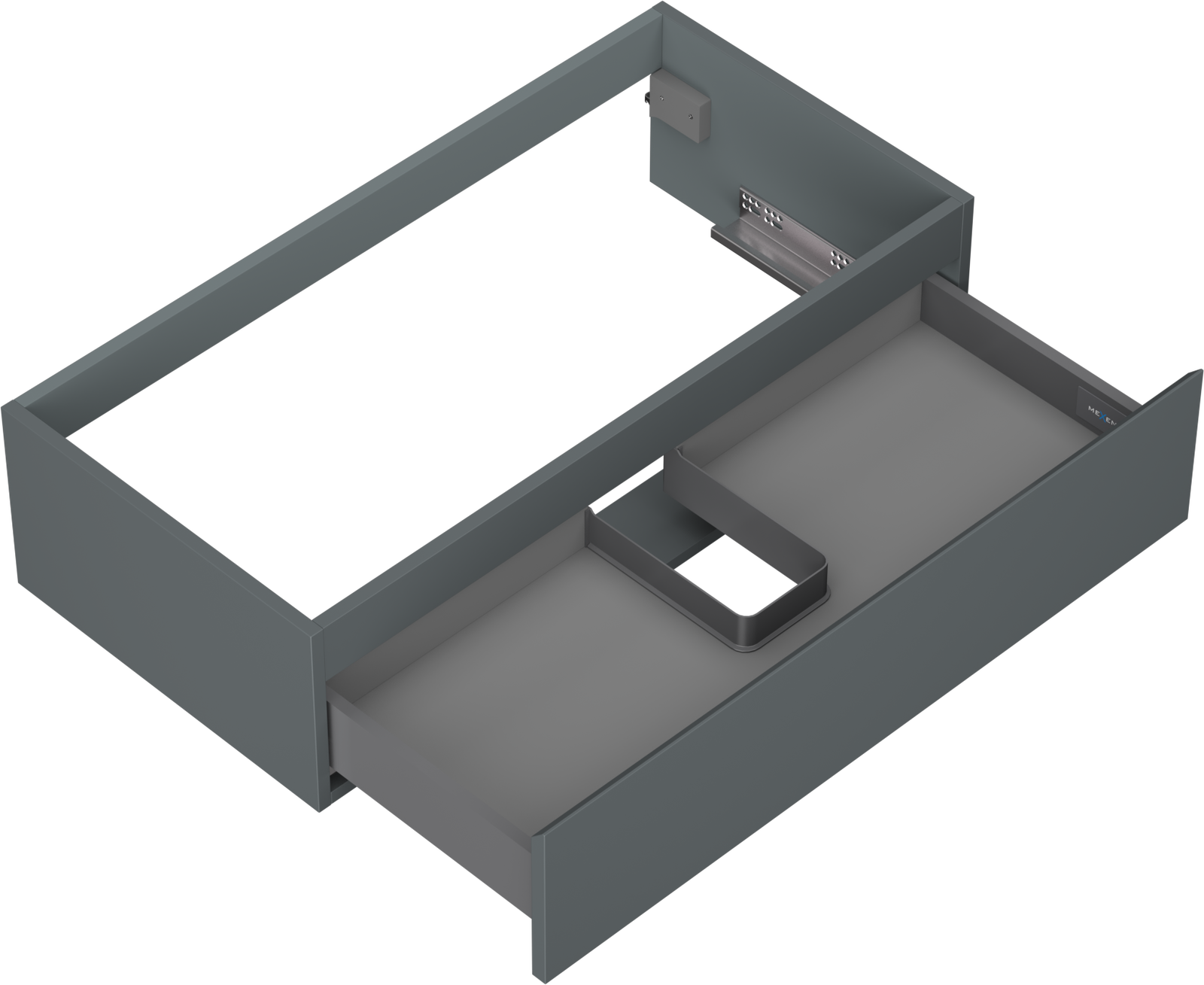 Decupajul în sertar este proiectat în așa fel încât să acomodeze sifonul, care este esențial în instalațiile de lavoare. Datorită acestui fapt, mobila poate fi montată complet funcțională, fără a fi necesară renunțarea la spațiul din sertar în favoarea instalației.
