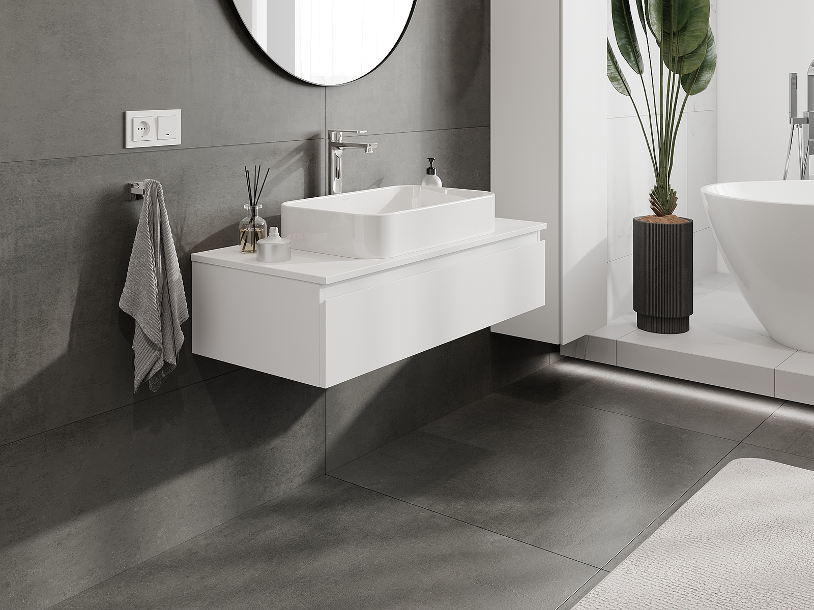 Mobilierul nostru modular pentru baie poate fi combinat în diverse configurații de culori, permițând personalizarea completă. Puteți alege atât aspectul, cât și funcțiile fiecărui element, ceea ce permite adaptarea mobilierului la preferințele dvs. stilistice și funcționale.