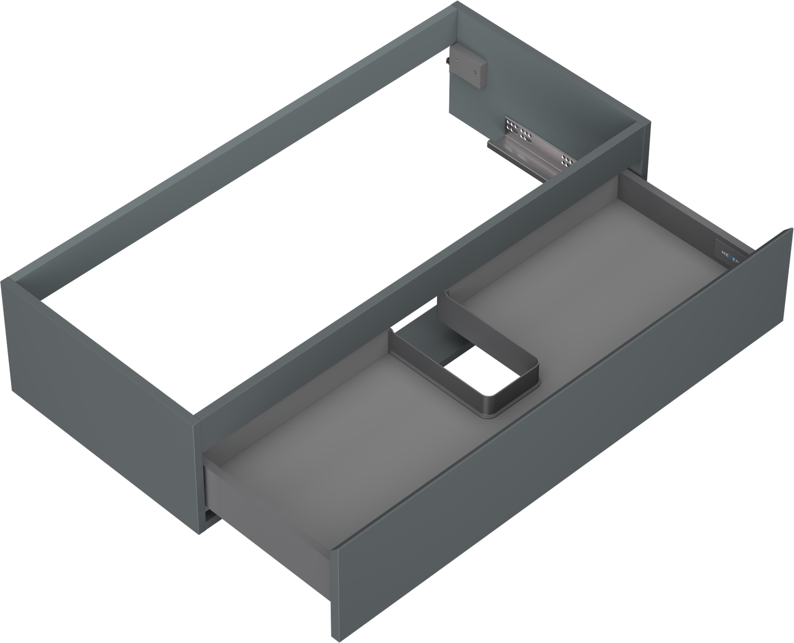 Decupajul în sertar este proiectat în așa fel încât să acomodeze sifonul, care este esențial în instalațiile de lavoare. Datorită acestui fapt, mobila poate fi montată complet funcțională, fără a fi necesară renunțarea la spațiul din sertar în favoarea instalației.