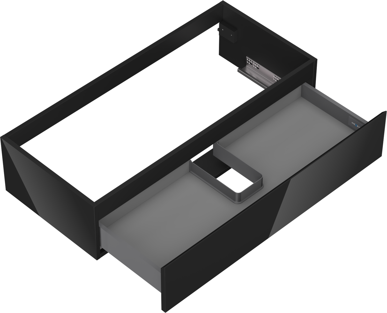 Decupajul în sertar este proiectat în așa fel încât să acomodeze sifonul, care este esențial în instalațiile de lavoare. Datorită acestui fapt, mobila poate fi montată complet funcțională, fără a fi necesară renunțarea la spațiul din sertar în favoarea instalației.