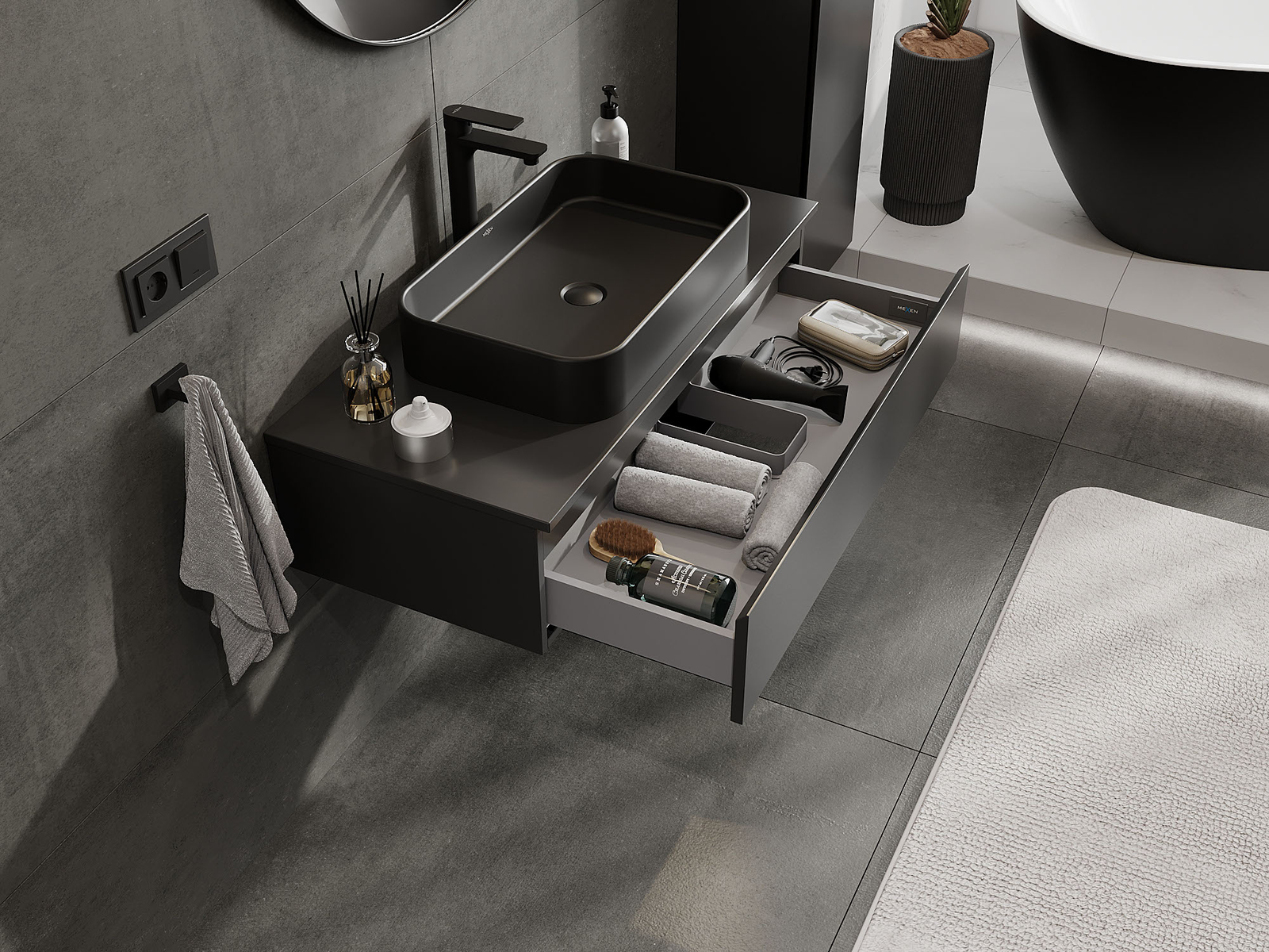 Mexen Orio dulap baie sub chiuvetă 100 cm, 1 sertar, negru mat - 91A10-10023-1-BF71