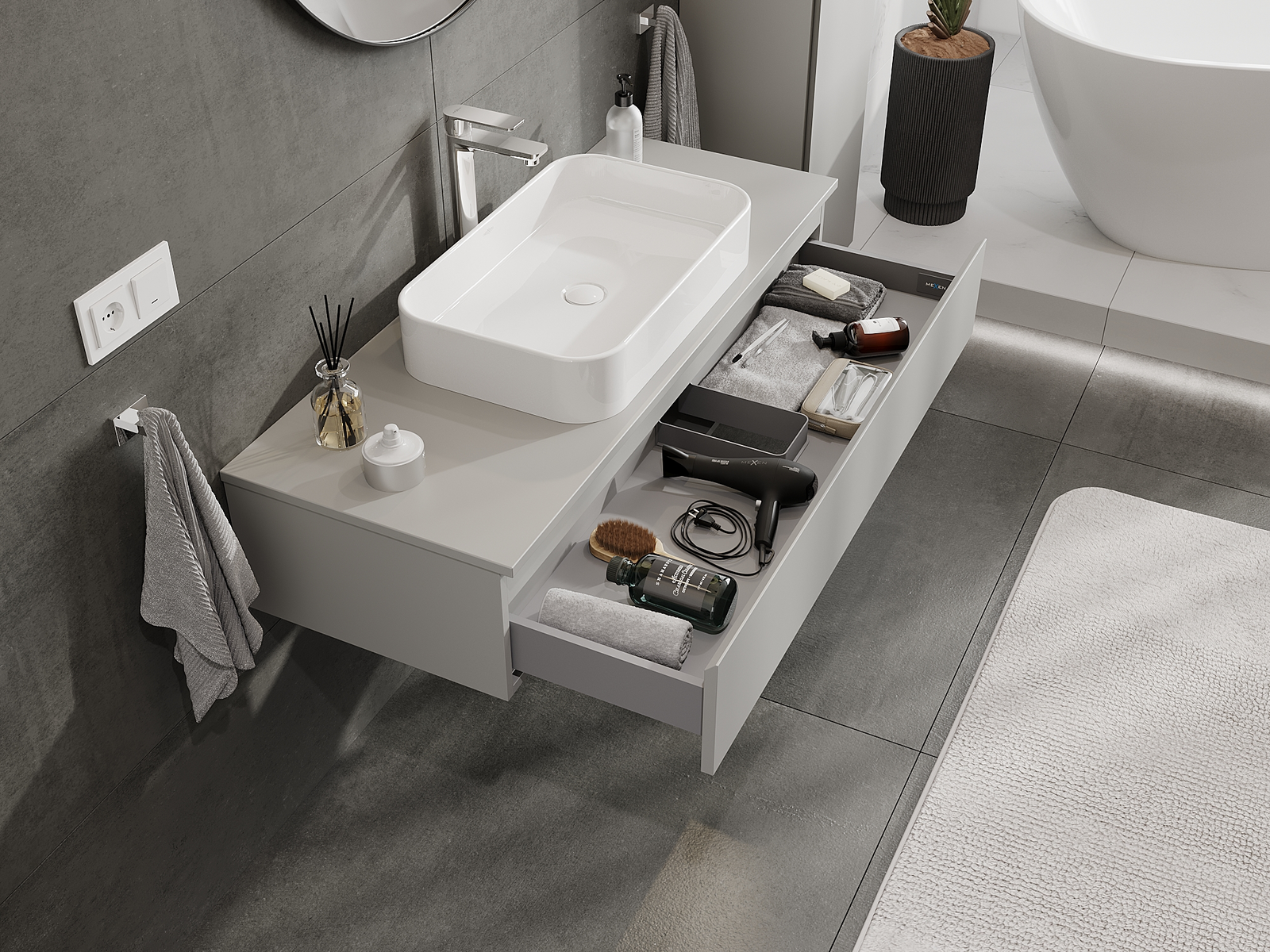 Mobilierul nostru modular pentru baie poate fi combinat în diverse configurații de culori, permițând personalizarea completă. Puteți alege atât aspectul, cât și funcțiile fiecărui element, ceea ce permite adaptarea mobilierului la preferințele dvs. stilistice și funcționale.