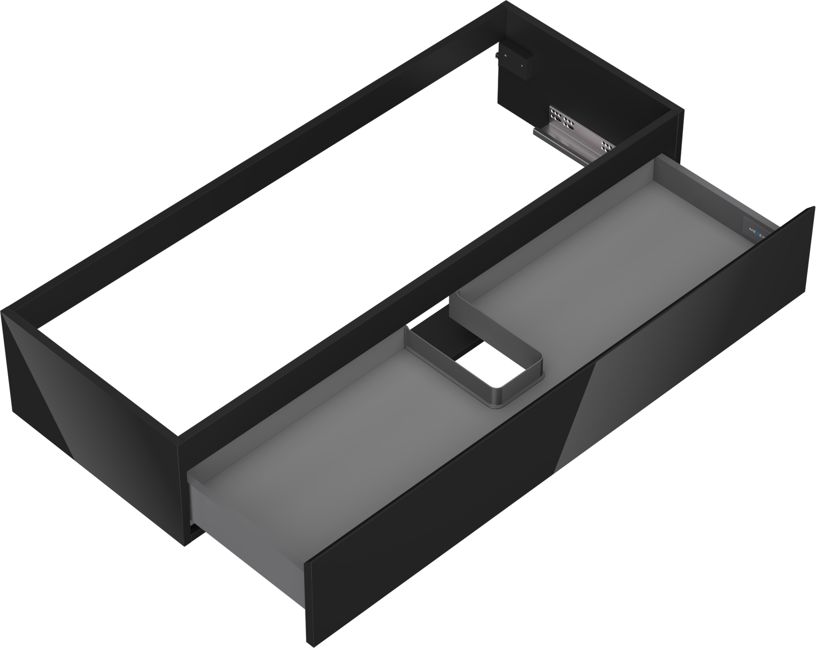 Decupajul din sertar este conceput pentru a găzdui sifonul, care este esențial pentru instalațiile de lavoar. Acest lucru permite ca piesa de mobilier să fie instalată într-un mod complet funcțional, fără a fi nevoie să renunțați la spațiul din sertar pentru instalare.
