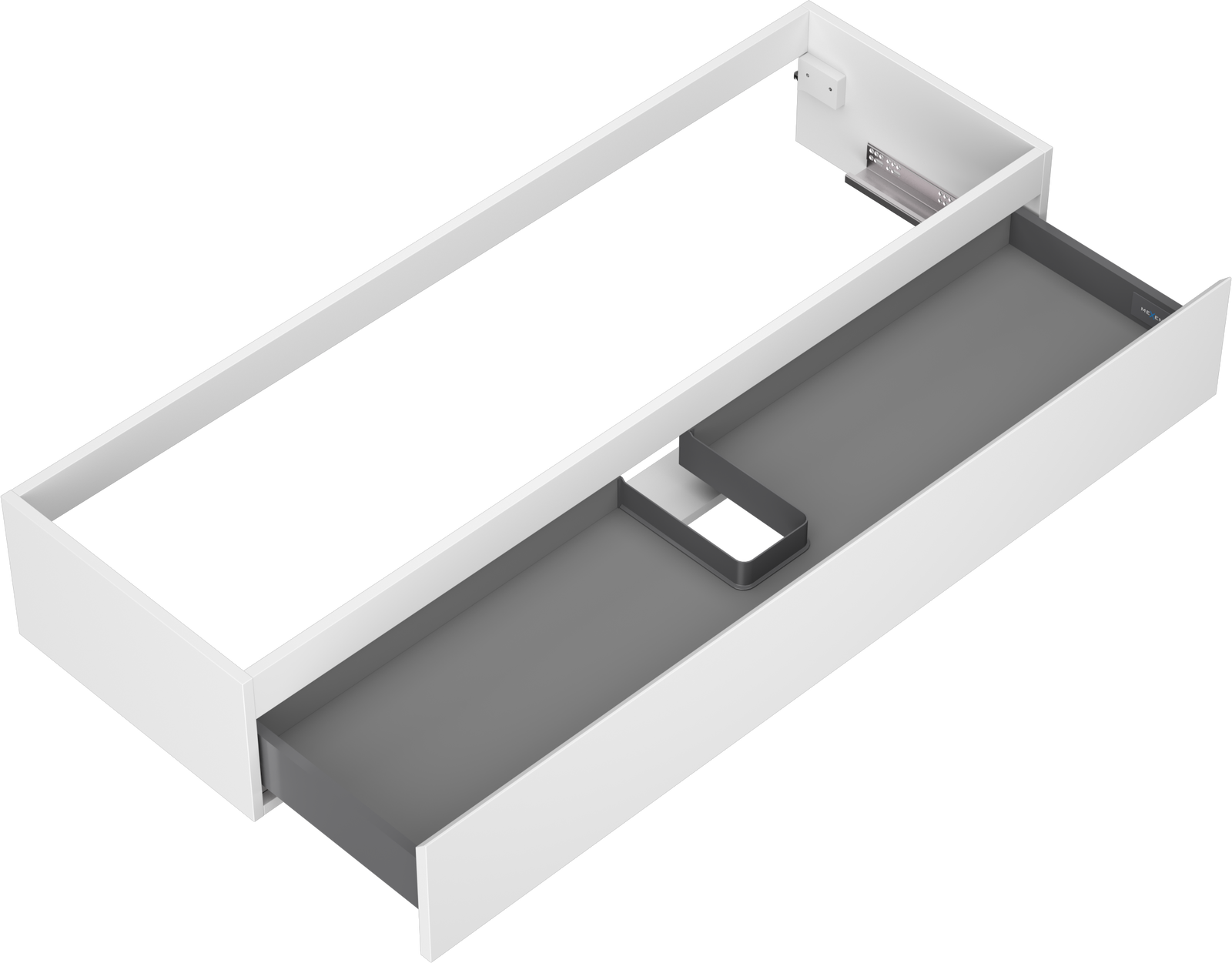 Decupajul în sertar este proiectat în așa fel încât să acomodeze sifonul, care este esențial în instalațiile de lavoare. Datorită acestui fapt, mobila poate fi montată complet funcțională, fără a fi necesară renunțarea la spațiul din sertar în favoarea instalației.
