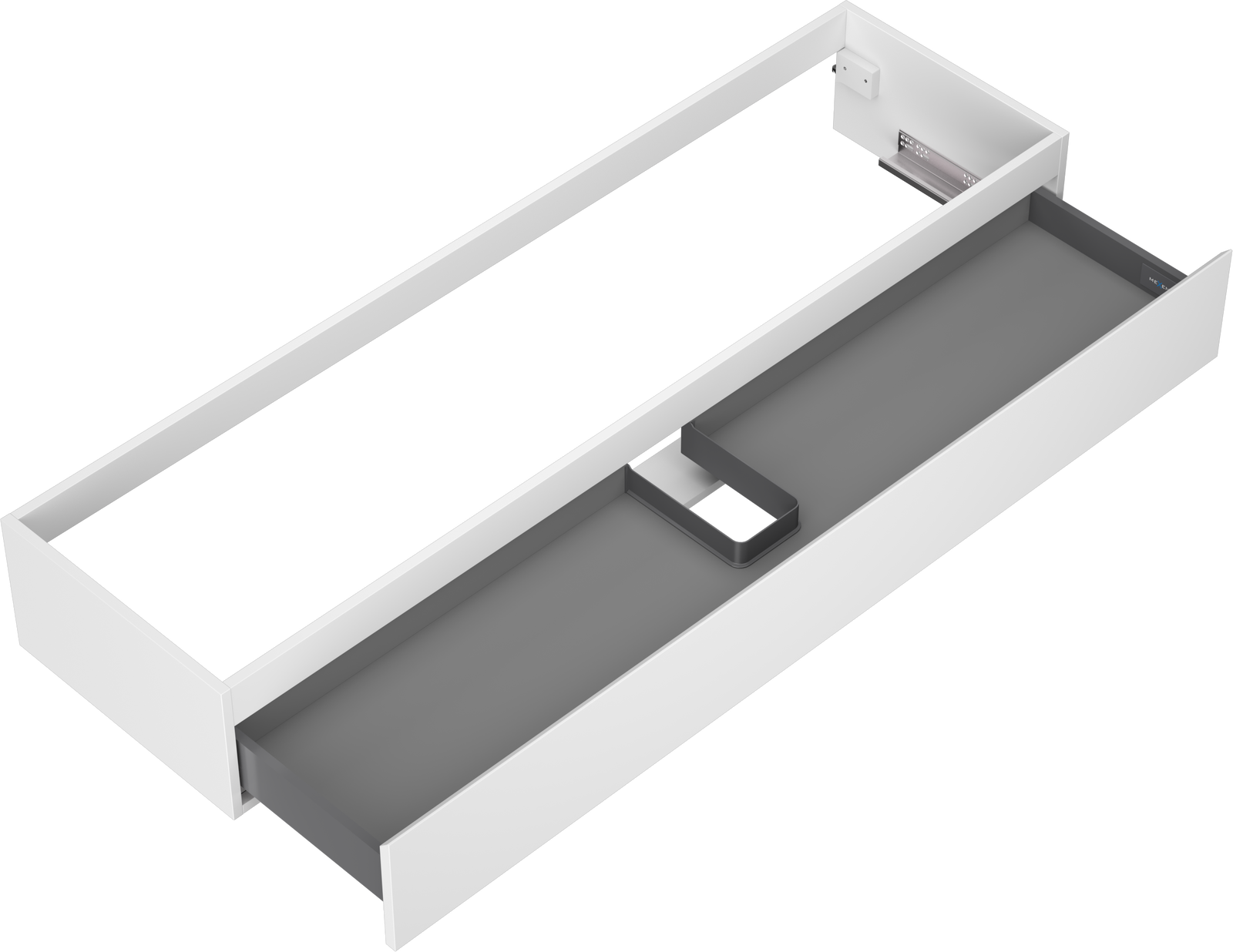 Decupajul în sertar este proiectat în așa fel încât să acomodeze sifonul, care este esențial în instalațiile de lavoare. Datorită acestui fapt, mobila poate fi montată complet funcțională, fără a fi necesară renunțarea la spațiul din sertar în favoarea instalației.
