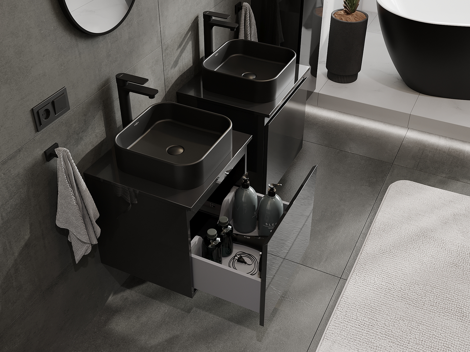 Mobilierul nostru modular pentru baie poate fi combinat în diverse configurații de culori, permițând personalizarea completă. Puteți alege atât aspectul, cât și funcțiile fiecărui element, ceea ce permite adaptarea mobilierului la preferințele dvs. stilistice și funcționale.