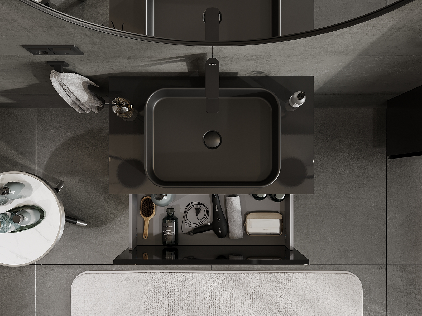 Mexen Orio dulap de baie sub chiuvetă 80 cm, 1 sertar, negru lucios - 91A10-08047-1-BF70