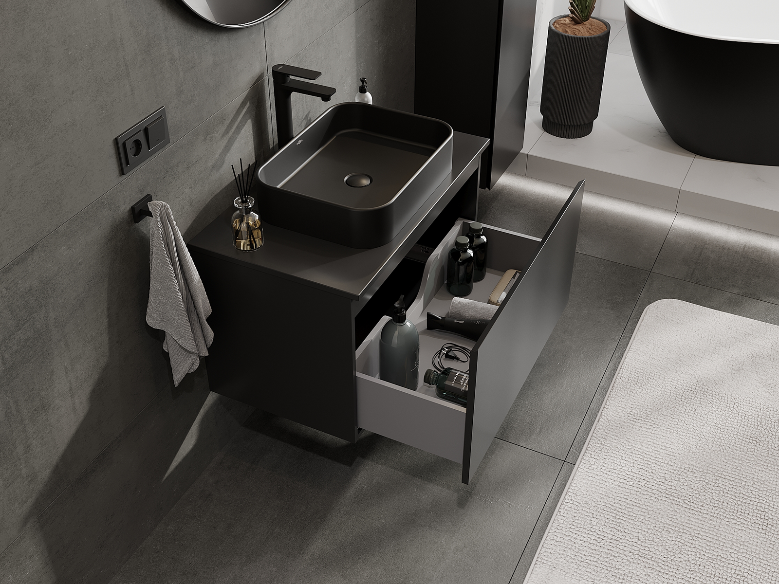 Mexen Orio dulap baie sub chiuvetă 80 cm, 1 sertar, negru mat - 91A10-08047-1-BF71