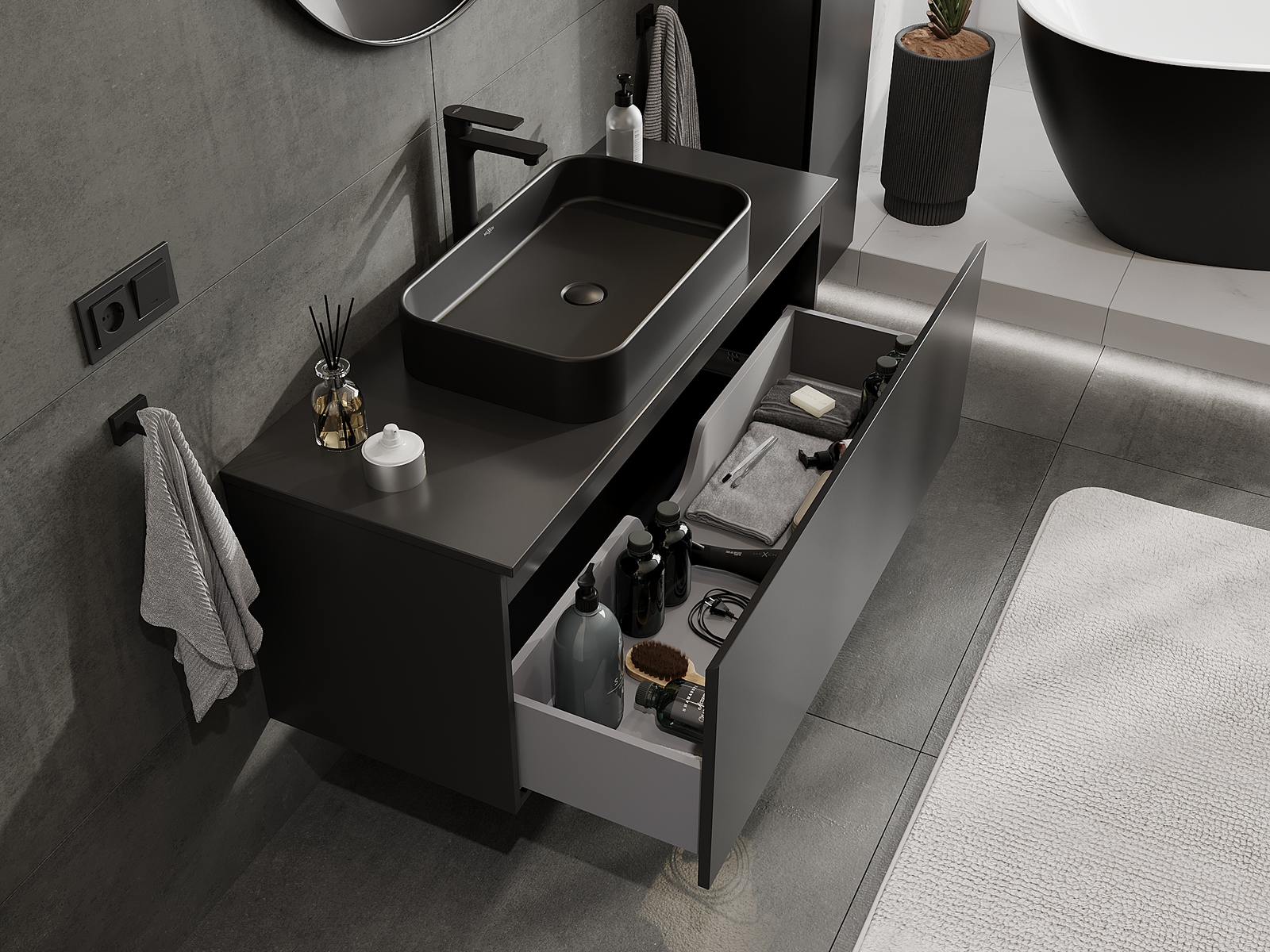 Mobilierul nostru modular pentru baie poate fi combinat în diverse configurații de culori, permițând personalizarea completă. Puteți alege atât aspectul, cât și funcțiile fiecărui element, ceea ce permite adaptarea mobilierului la preferințele dvs. stilistice și funcționale.