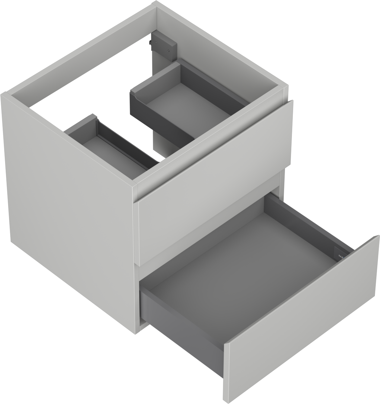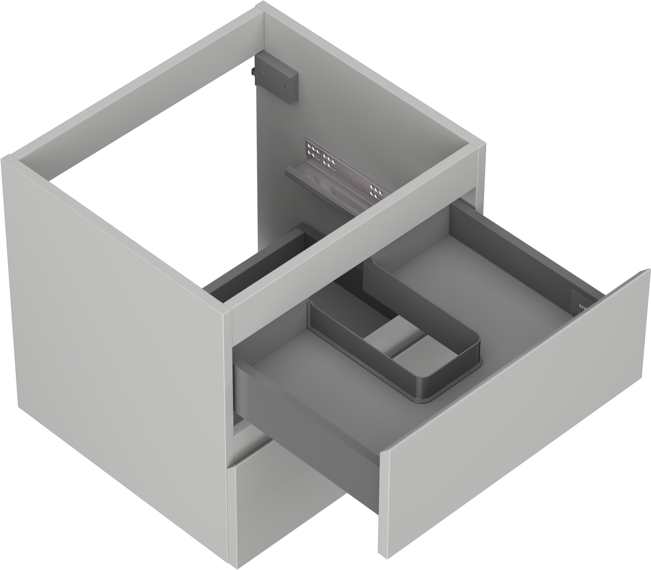 Decupajul din sertar este conceput pentru a găzdui sifonul, care este esențial pentru instalațiile de lavoar. Acest lucru permite ca piesa de mobilier să fie instalată într-un mod complet funcțional, fără a fi nevoie să renunțați la spațiul din sertar pentru instalare.
