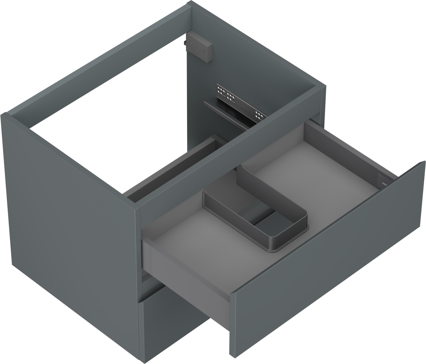 Decupajul în sertar este proiectat în așa fel încât să acomodeze sifonul, care este esențial în instalațiile de lavoare. Datorită acestui fapt, mobila poate fi montată complet funcțională, fără a fi necesară renunțarea la spațiul din sertar în favoarea instalației.