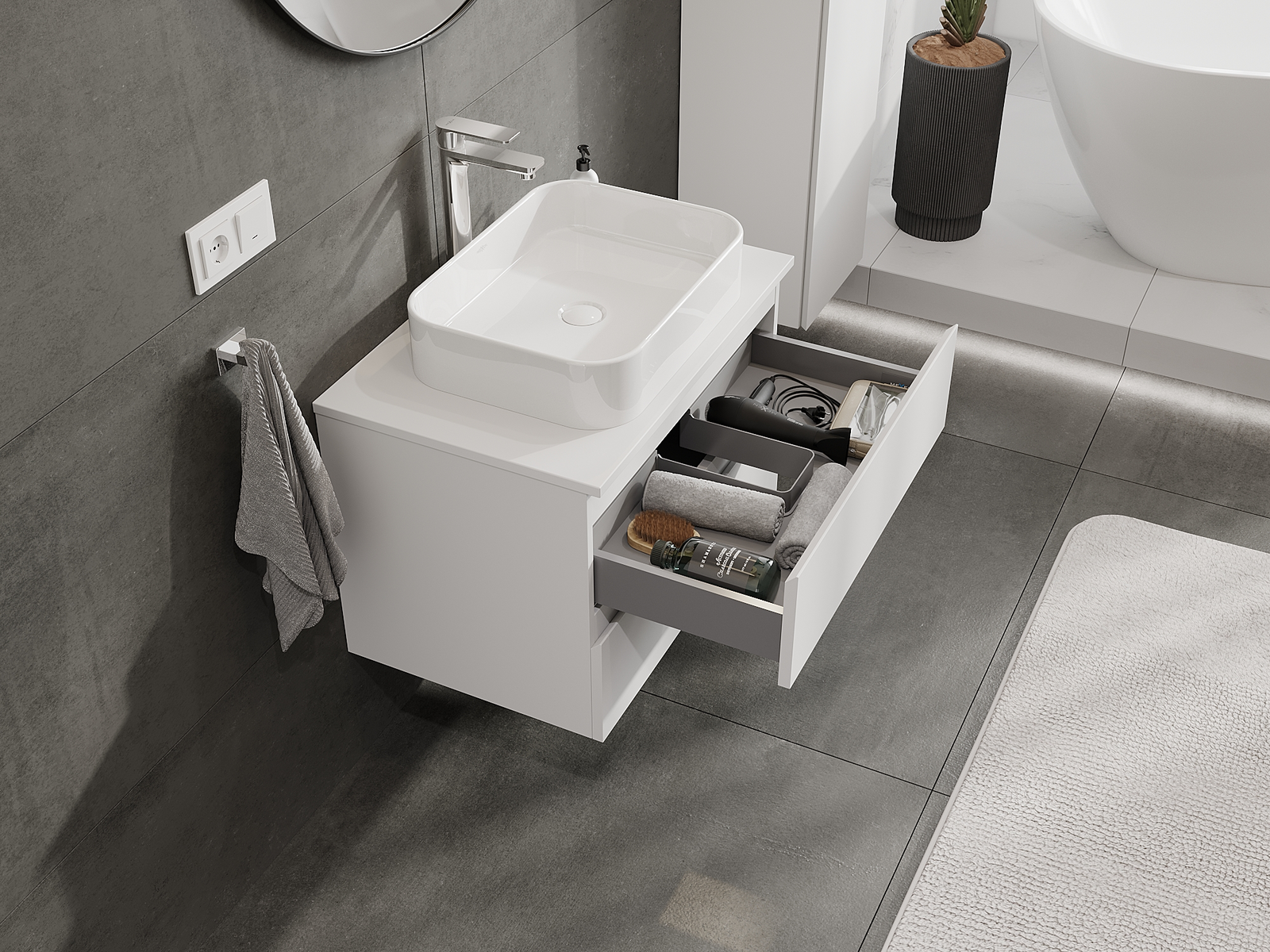 Mobilierul nostru modular pentru baie poate fi combinat în diverse configurații de culori, permițând personalizarea completă. Puteți alege atât aspectul, cât și funcțiile fiecărui element, ceea ce permite adaptarea mobilierului la preferințele dvs. stilistice și funcționale.