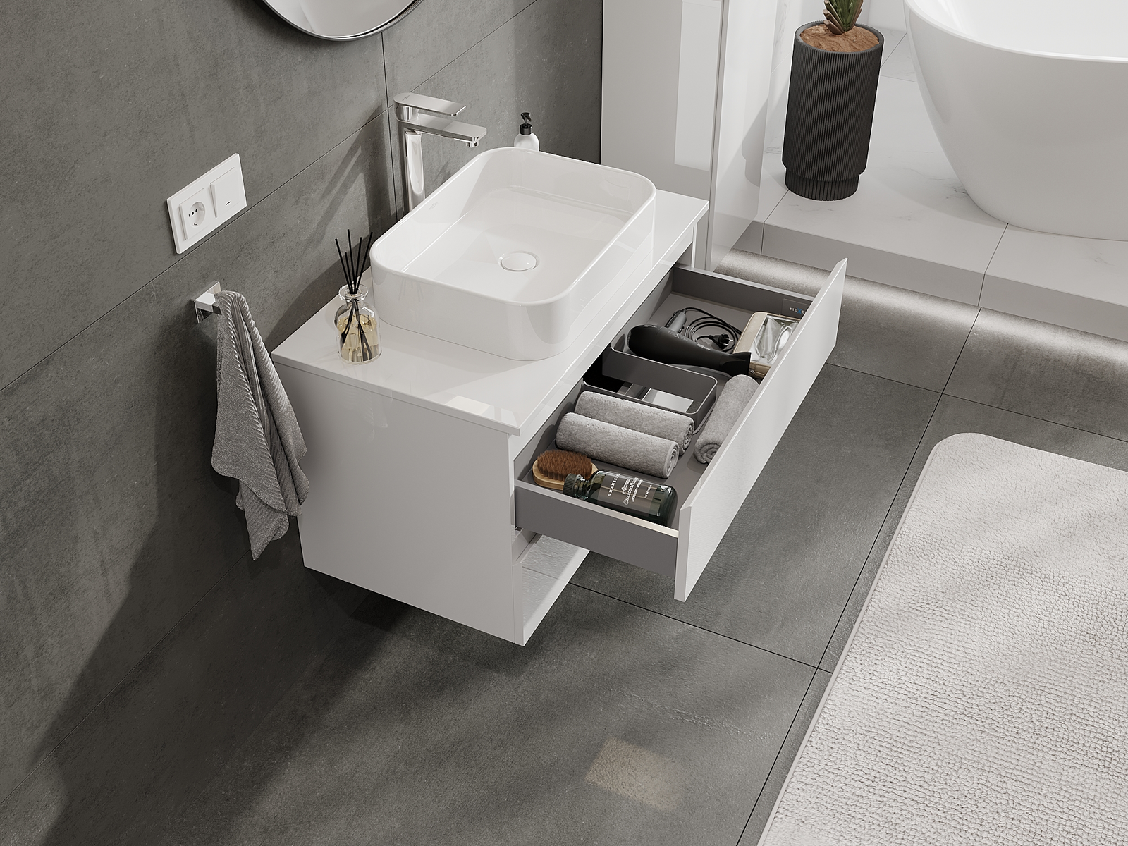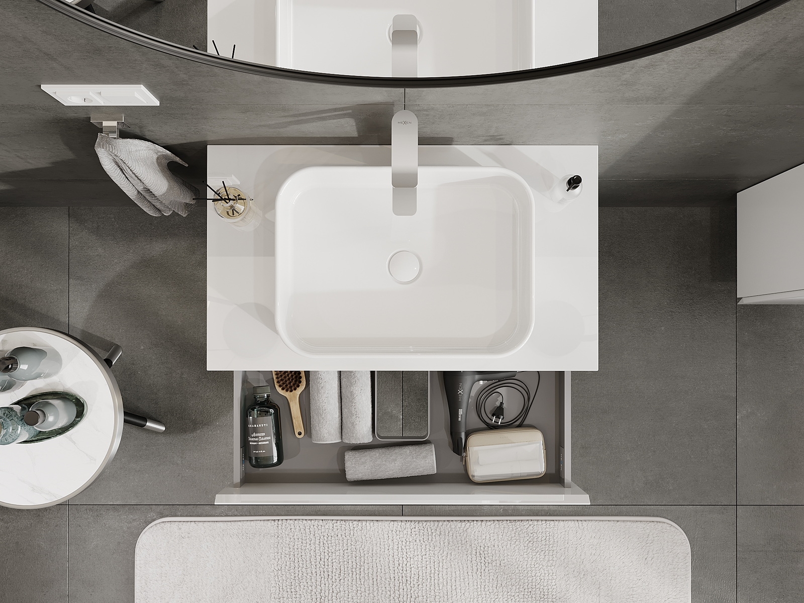 Mobilierul nostru modular pentru baie poate fi combinat în diverse configurații de culori, permițând personalizarea completă. Puteți alege atât aspectul, cât și funcțiile fiecărui element, ceea ce permite adaptarea mobilierului la preferințele dvs. stilistice și funcționale.