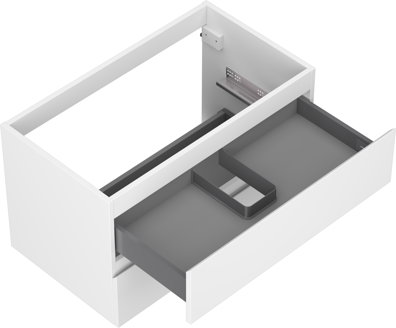 Decupajul din sertar este conceput pentru a găzdui sifonul, care este esențial pentru instalațiile de lavoar. Acest lucru permite ca piesa de mobilier să fie instalată într-un mod complet funcțional, fără a fi nevoie să renunțați la spațiul din sertar pentru instalare.
