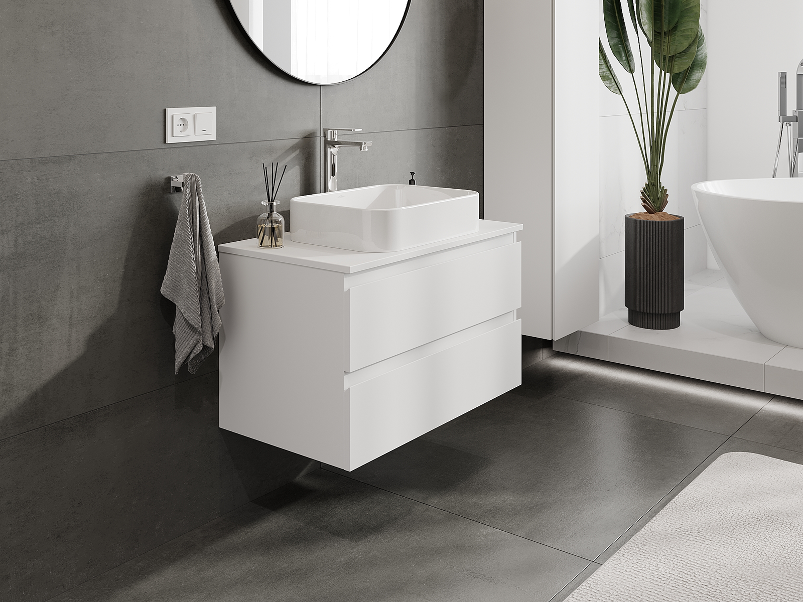 Mobilierul nostru modular pentru baie poate fi combinat în diverse configurații de culori, permițând personalizarea completă. Puteți alege atât aspectul, cât și funcțiile fiecărui element, ceea ce permite adaptarea mobilierului la preferințele dvs. stilistice și funcționale.