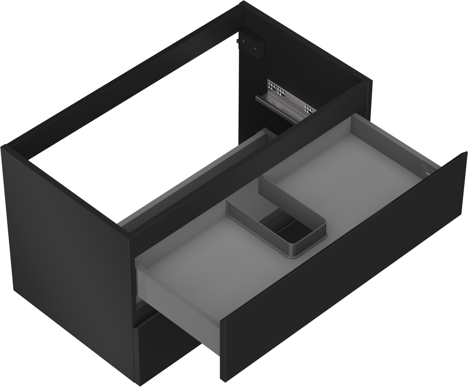 Decupajul în sertar este proiectat în așa fel încât să acomodeze sifonul, care este esențial în instalațiile de lavoare. Datorită acestui fapt, mobila poate fi montată complet funcțională, fără a fi necesară renunțarea la spațiul din sertar în favoarea instalației.