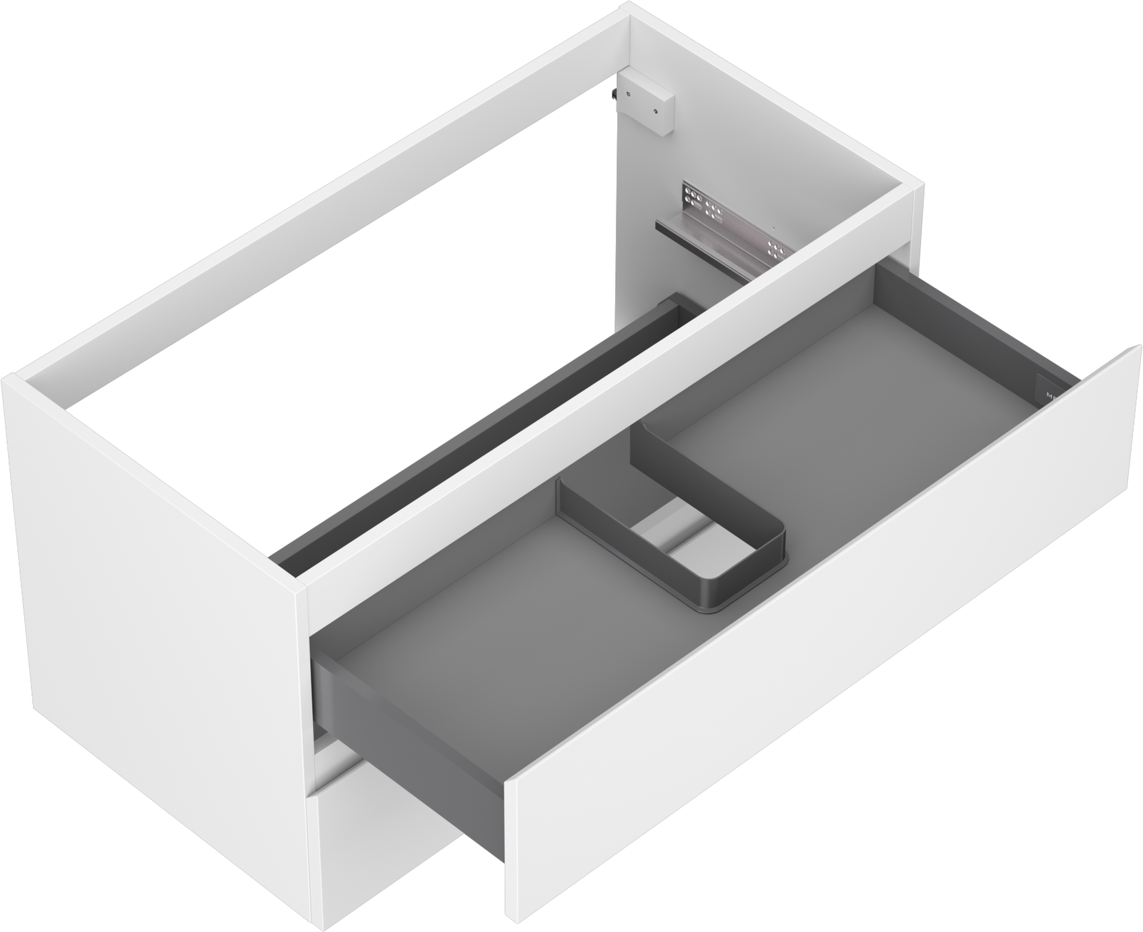 Decupajul în sertar este proiectat în așa fel încât să acomodeze sifonul, care este esențial în instalațiile de lavoare. Datorită acestui fapt, mobila poate fi montată complet funcțională, fără a fi necesară renunțarea la spațiul din sertar în favoarea instalației.