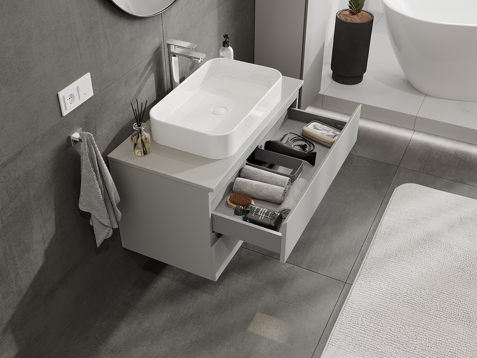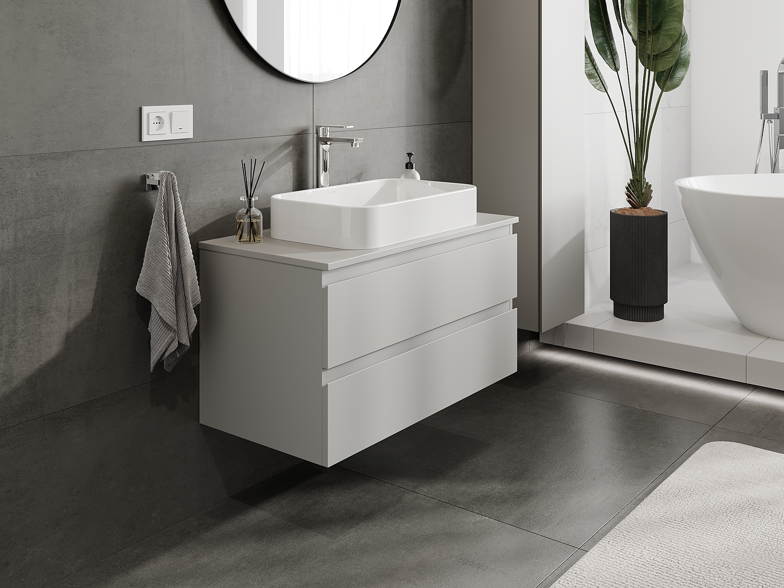 Mobilierul nostru modular pentru baie poate fi combinat în diverse configurații de culori, permițând personalizarea completă. Puteți alege atât aspectul, cât și funcțiile fiecărui element, ceea ce permite adaptarea mobilierului la preferințele dvs. stilistice și funcționale.